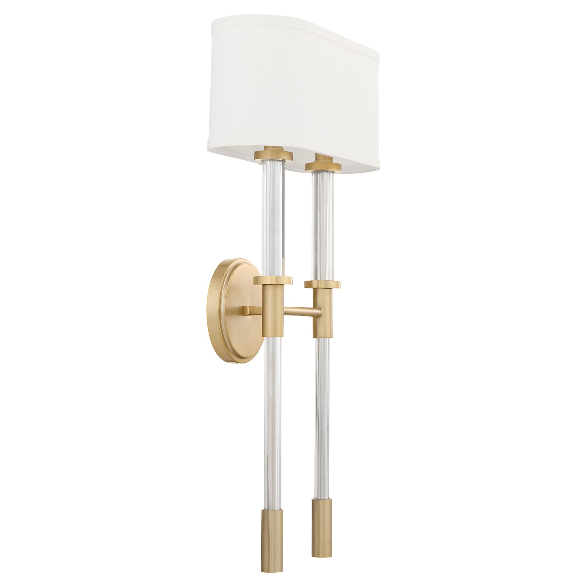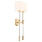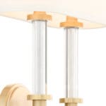 Ribbed clear glass tubes that surround classic arms contrast linen shades and provide a combination of materials for a dynamic presentation in the Hightower series of designer lighting. Aged brass and cream linen comprises a color palette that melds well with many design styles. Details throughout the frame and the stark change between the segments of materials offer a unique composition and memorable experience. Illuminate your next interior design project with the candelabra sockets of the Hightower series.