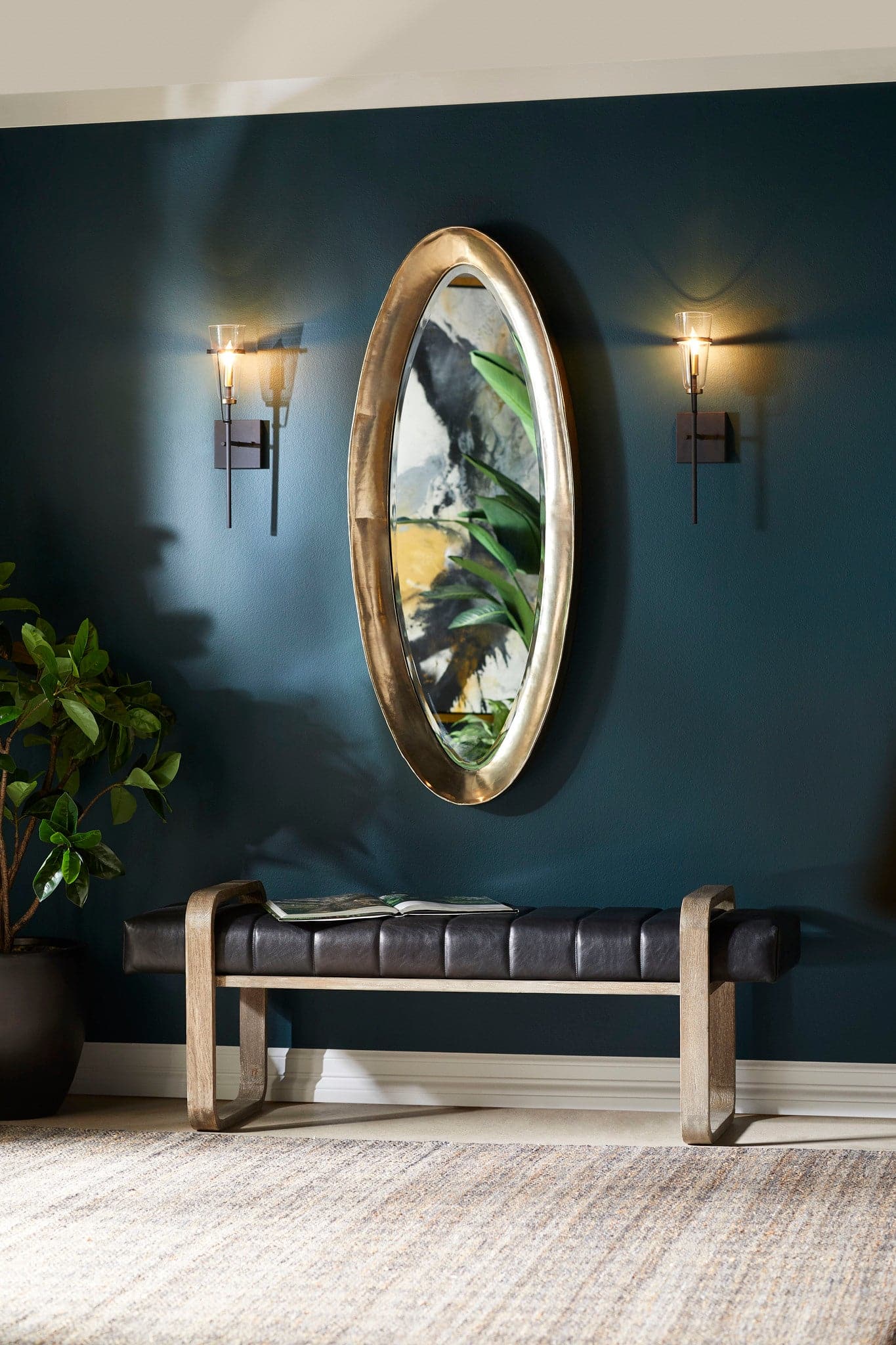 Give any bedroom or bathroom a sleek, modern update with this oval-shaped silver mirror. The clean, open silhouette allows for the perfect view above any dresser or sink.