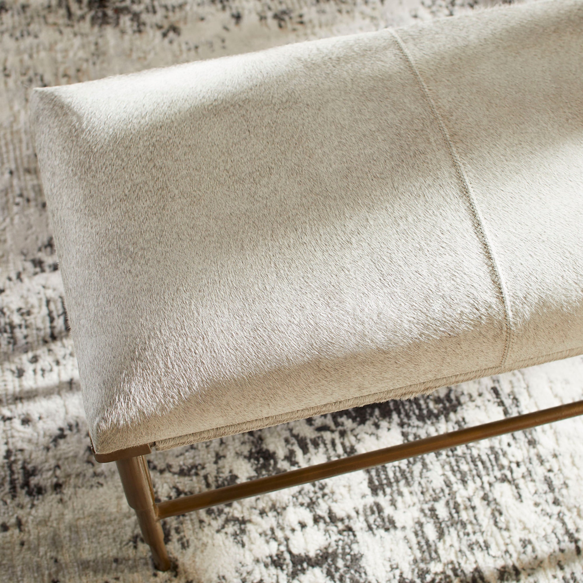 This is a bold piece for any space that is looking to accommodate a sitting area. It features a thick cushioned pad for sitting on that is stitched with linear indentations to give it style while its material is highly texturized. All supported by small and solid bodied legs.