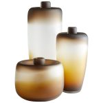 The Jaxon vase is the perfect accent for your spring seasonal floral arrangements. This handblown triplex glass accent features a trio of gradient colors, amber, frost, and black, that are formed in a horizontal wave, spanning the entirety of the vase. Gorgeous when displayed alone or with the additional two sizes included in the set. Perfect for any decor style, any of these vessels make the perfect anchor piece for any living room coffee table, study room bookshelf, or entryway display.