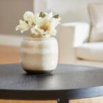 With a classic bud-shaped silhouette, this vase brings a touch of artisanal charm to any arrangement in your space. A two-toned surface mixes creamy-white and bronze brush strokes covered in a glossy glaze, this vase is perfect for any modern, eclectic, or bohemian design. The artistic appeal is evident in this porcelain accent. The neutral notes make it the ideal accessory to store your floral arrangements, branches, or to display on its own. Update your kitchen countertop, or add some natural-contemporary style to your entryway with the Kasha vase.