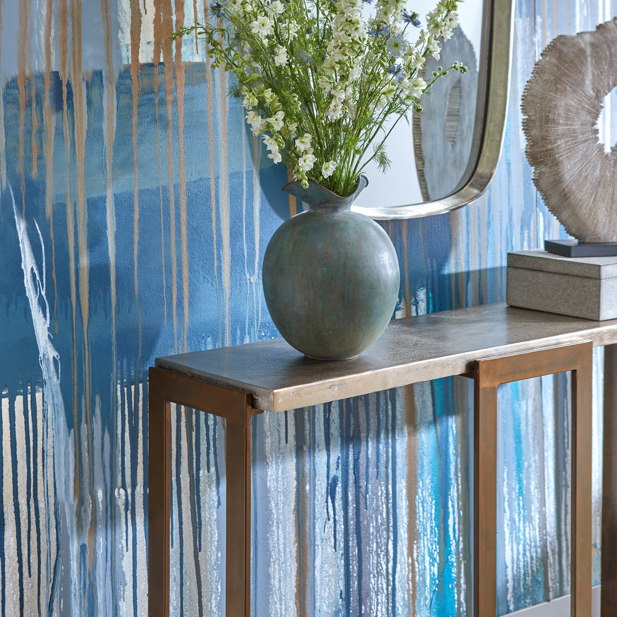 Enhance any space with the elegant Lacerta console table. Finished on all sides, this table has a polished look no matter the angle from which it’s viewed. The iron frame supports a long, spacious aluminum top in a bronze finish. Whether it is placed behind a sofa or against a wall, the versatility of the Lacerta console table will surely captivate its audience.