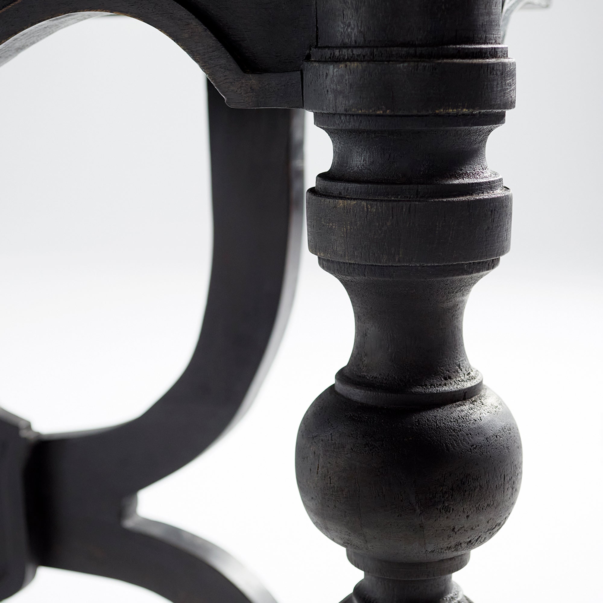 The Lacroix console table comprises solid wood, coated in a slate black finish with hand-carved decorative accents. The base’s traditional formation is formed by two front leg decorative pillars and a single ornate back brace leg. Adorn your transitional entryway or complete your living room styling by placing the console behind a neutral colored sofa.