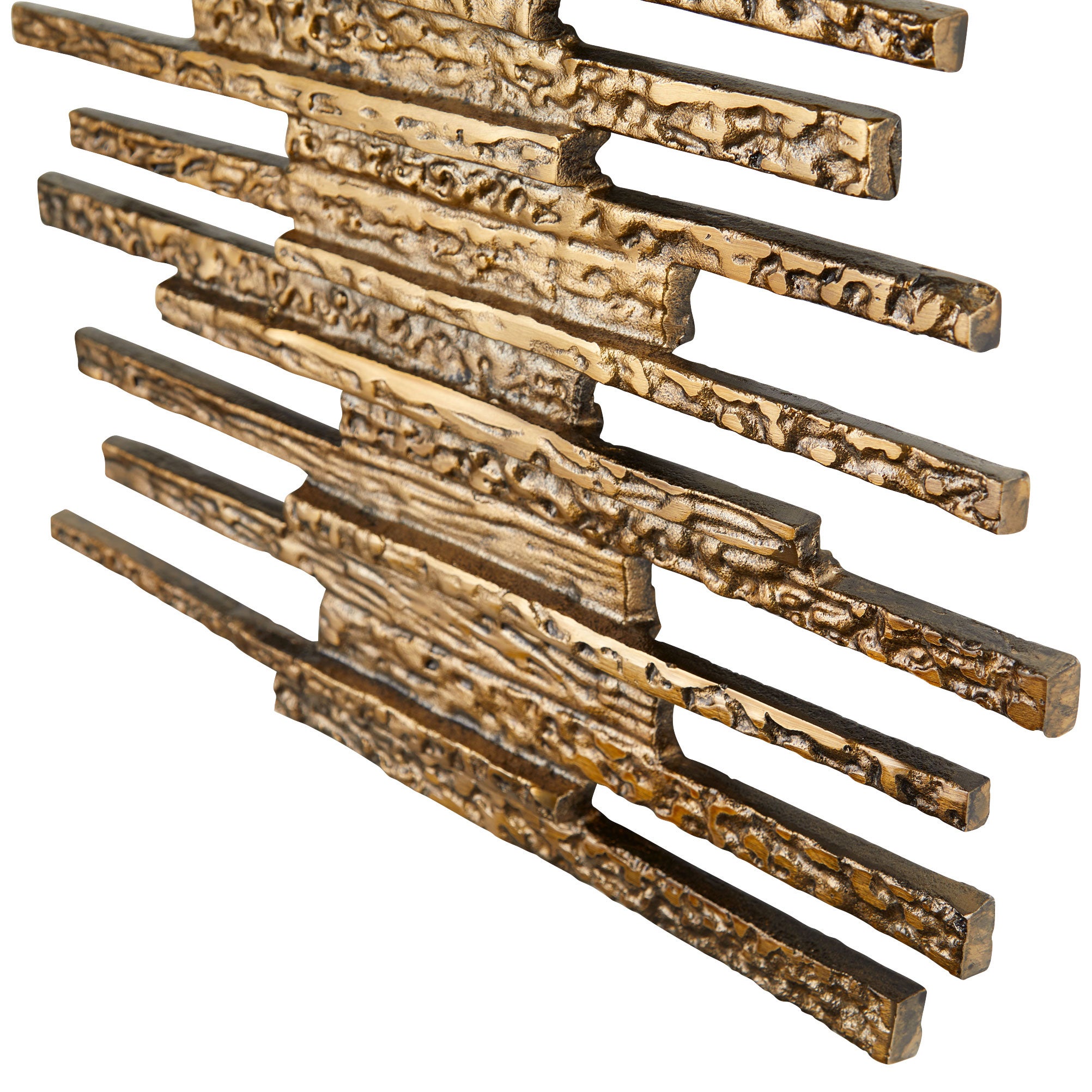 This wall decor is fashioned in a line formed with irregular, rectangular individual pieces that are fashioned together. It’s a beautiful piece that adds texture to your wall space. The combination of color and texture on this piece make for an interesting reflective surface.