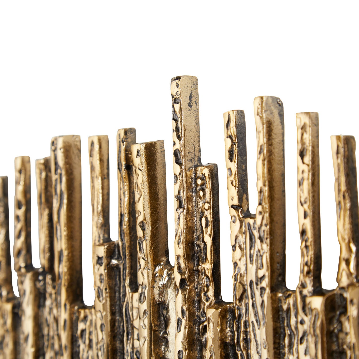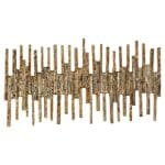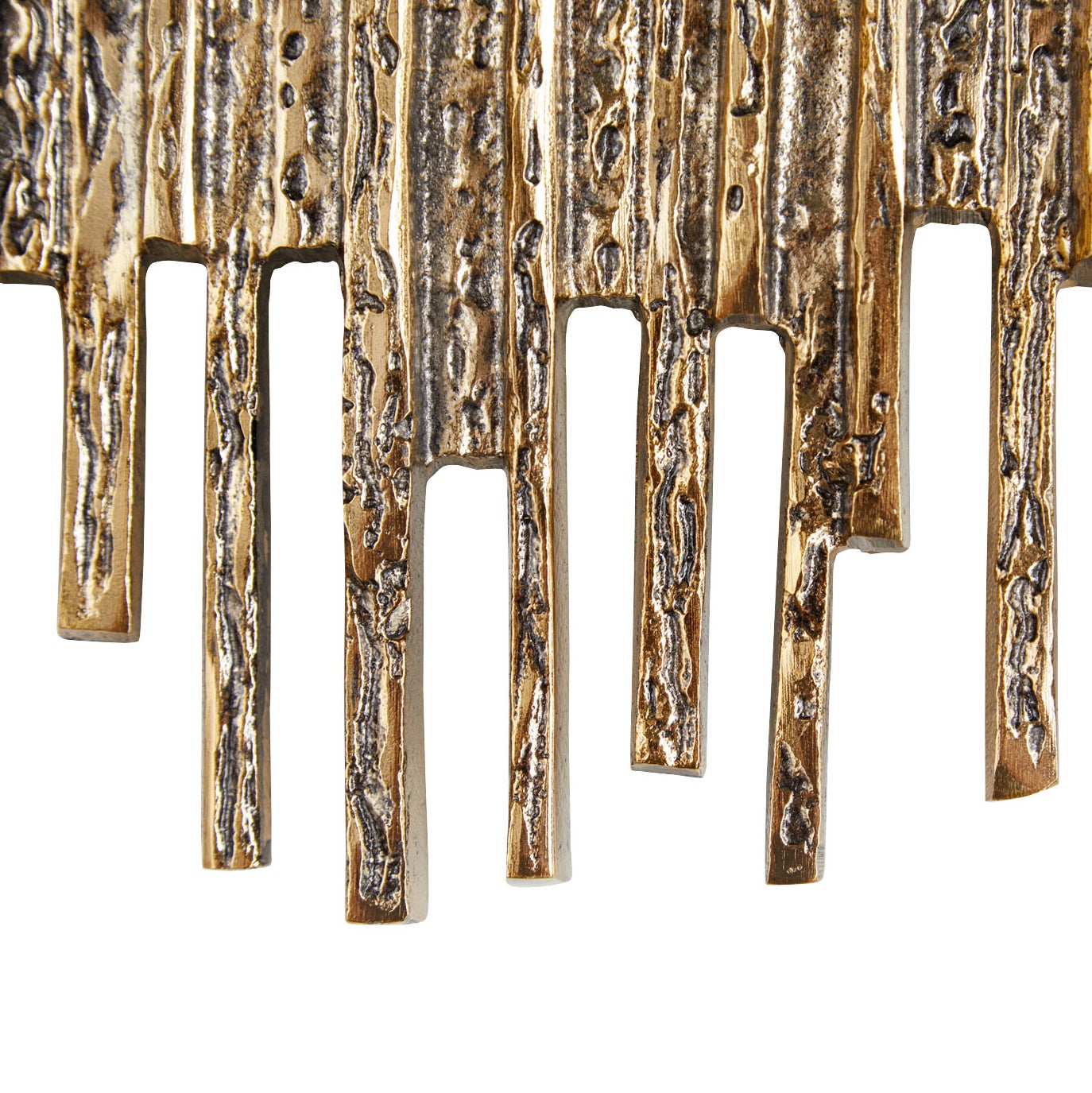 This wall decor is fashioned in a line formed with irregular, rectangular individual pieces that are fashioned together. It?s a beautiful piece that adds texture to your wall space. The combination of color and texture on this piece make for an interesting reflective surface.
