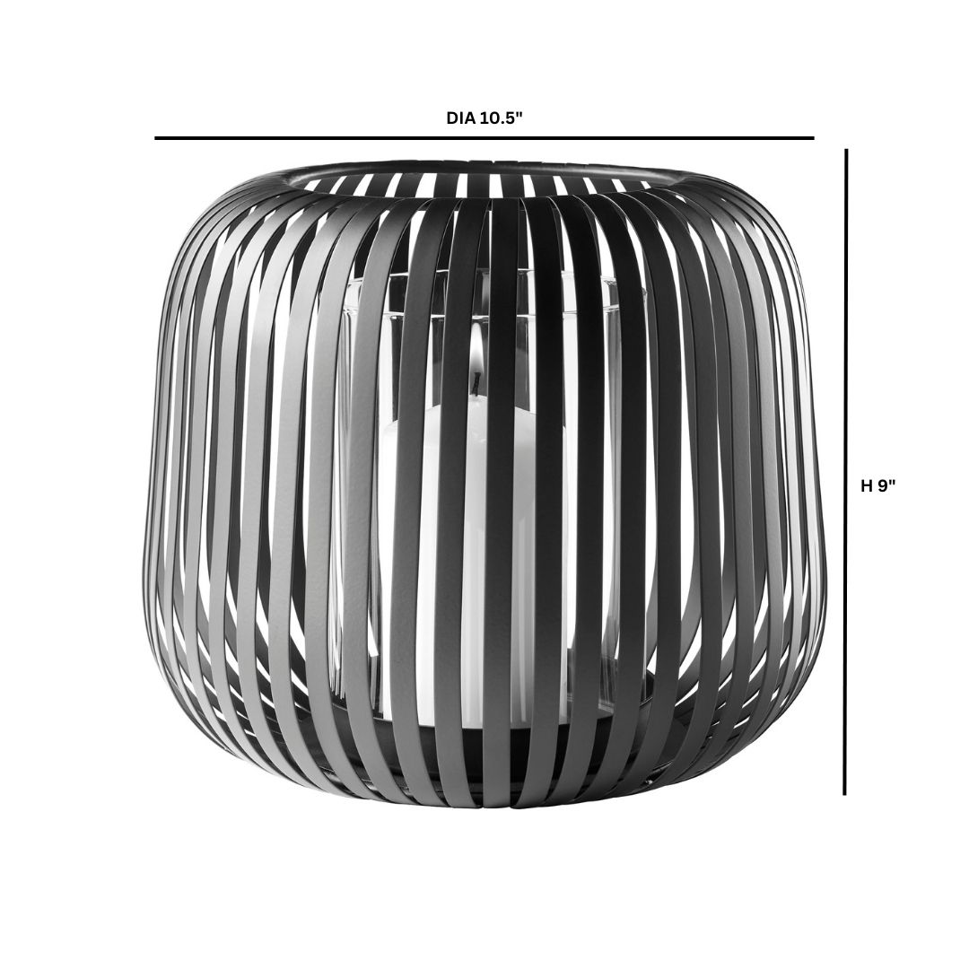 The Liny Collection of hurricanes provides practicality through enchanting design. Each hurricane features delicate metal strips strategically spaced apart to create a brilliant play of light. At the base of each hurricane, a ring ensures the secure placement of candles, allowing you to enjoy the warm glow without worry. Clear hurricane glass provides additional protection and emphasizes the beauty of flickering candlelight. Options of powder-coated finishes in luxurious gold or sleek black contribute to the versatility of the Liny hurricanes. Their large-scale design commands attention and adds a bold focal point, whether displayed individually or clustered together. Available in three sizes.