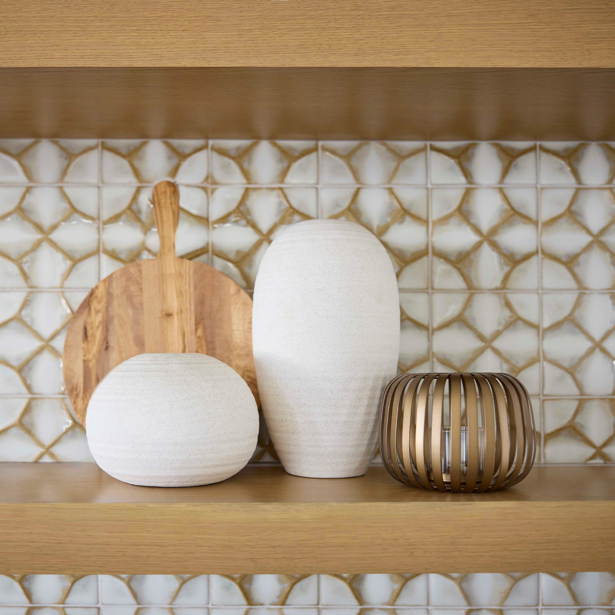 The Liny Collection of hurricanes provides practicality through enchanting design. Each hurricane features delicate metal strips strategically spaced apart to create a brilliant play of light. At the base of each hurricane, a ring ensures the secure placement of candles, allowing you to enjoy the warm glow without worry. Clear hurricane glass provides additional protection and emphasizes the beauty of flickering candlelight. Options of powder-coated finishes in luxurious gold or sleek black contribute to the versatility of the Liny hurricanes. Their large-scale design commands attention and adds a bold focal point, whether displayed individually or clustered together. Available in three sizes.