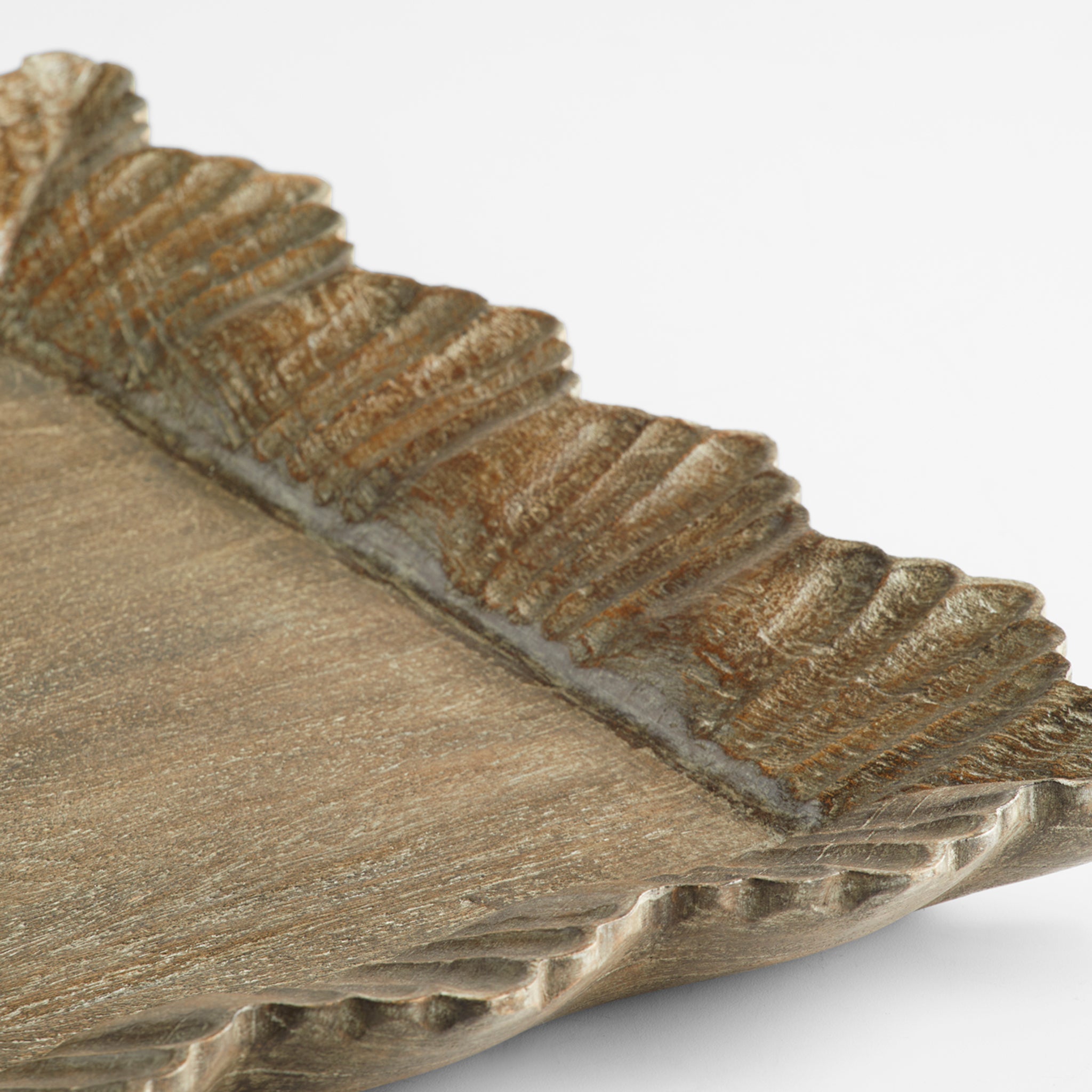 Ideal for entertaining, the Lorenza tray is large in scale and bears intriguing detail fit for any tablescape. Hand-carved Mango wood is sculpted into a long, rectangular shape with a ruffled border surrounding the center of the tray. The natural appeal of the Lorenza tray grants it the opportunity to support many different stylings.