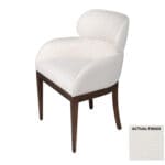 The Lucien dining chair features a reinforced frame of multi-laminated sheet metal, creating a curved two-tier shape for a distinctive, contemporary look. The seat is supported by a solid dark brown Grandis wood base. Upholstered in off-white geometric weave fabric, the chair provides comfort with D30 foam seats, making it a perfect addition to your dining area.