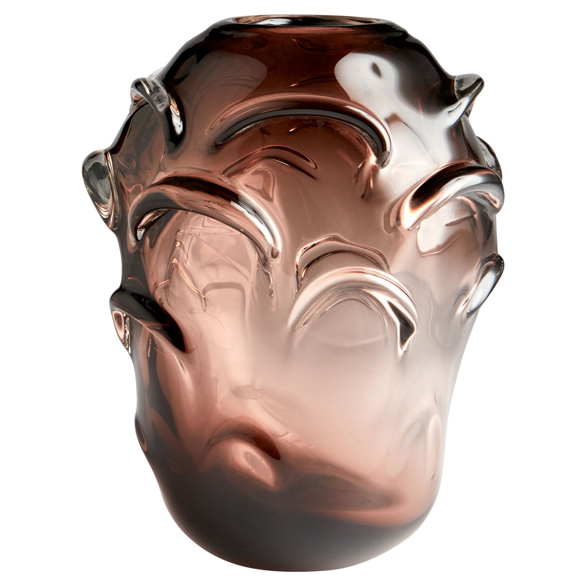 The Lunaria art glass vases add a vintage touch to any style of d?cor. A purple gradient of color begins at the top and fades gracefully to the bottom. Petal-like shapes cascade down the sides giving the pieces the essence of a flower. These versatile vases fortify their surroundings as is, or with added fresh or faux foliage.