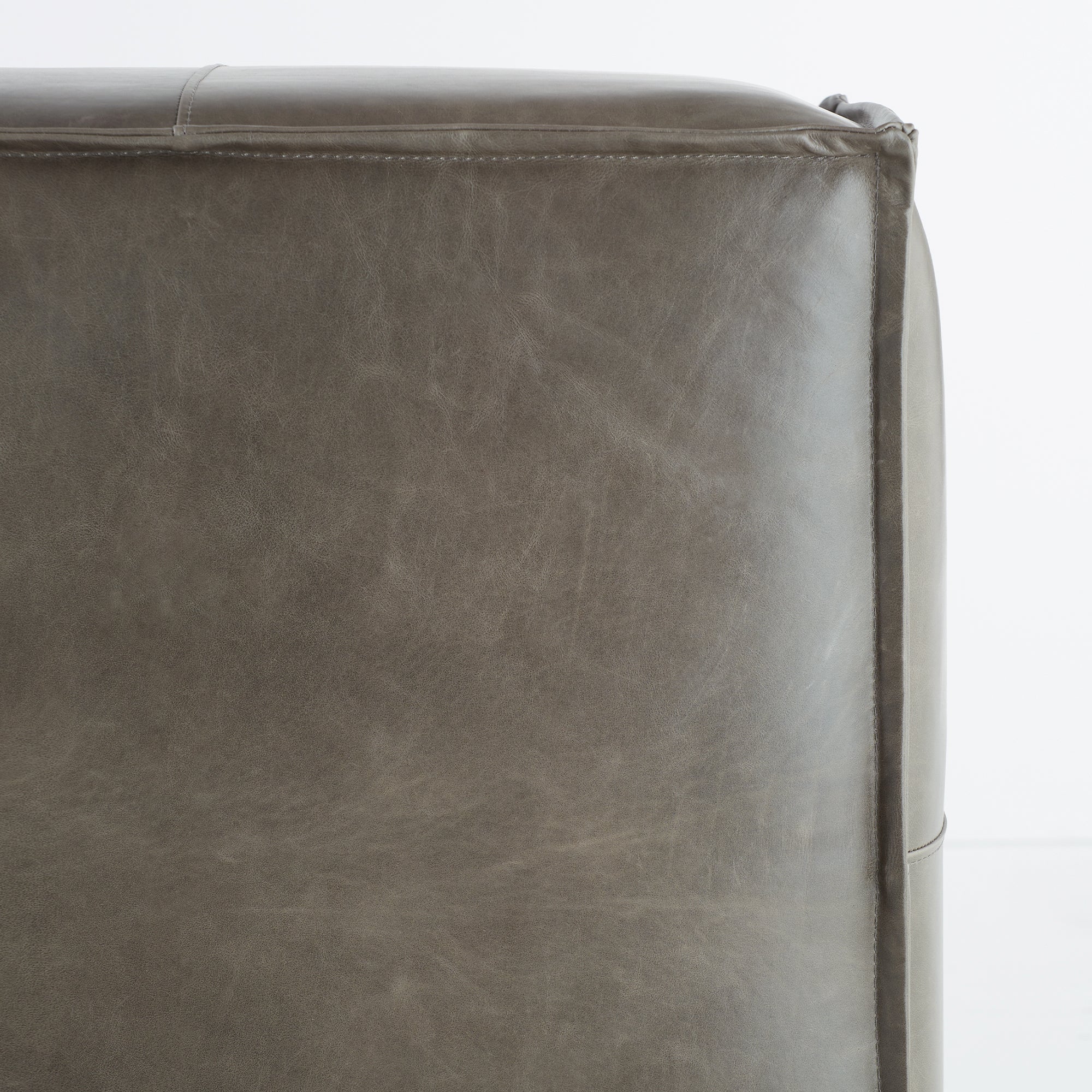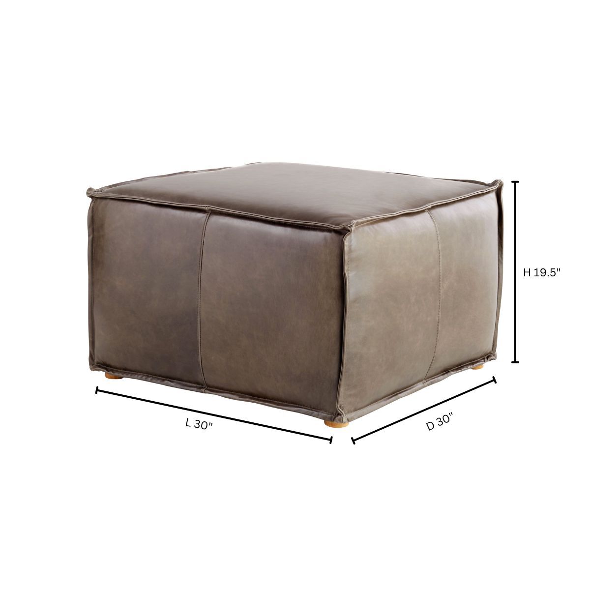 The leather Lusso poufs are constructed of soft, durable grey leather with hints of deep brown undertones. Ideal for seating or used as informal tables, these poufs are the epitome of casual luxuriousness. Foam cushions provide lasting comfort wrapped in a natural hide with a half-inch flange along the seams.