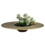 The Magen #1 bowl is a gorgeously concentric tray with a dark inverted bulb in the center. The base is splendidly gilded heightening the dark bulbous contrast. Perfect as a utilitarian or decorative item in any interior space.