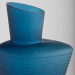 The Manarola vases command attention with their deep blue color and large-scale form, expertly crafted from thick cast glass. The vases boast crisp asymmetrical angles, indents, and openings. Each part is unique, with variations in the hand-carved ribbed detail that showcase the artistry and craftsmanship behind every creation.?Available in three separate sizes.