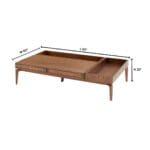 The Match cocktail table features a medium brown solid Grandis wood silhouette. Storage space is added through touch-slide drawers and a recessed niche. Spider legs complete the design.