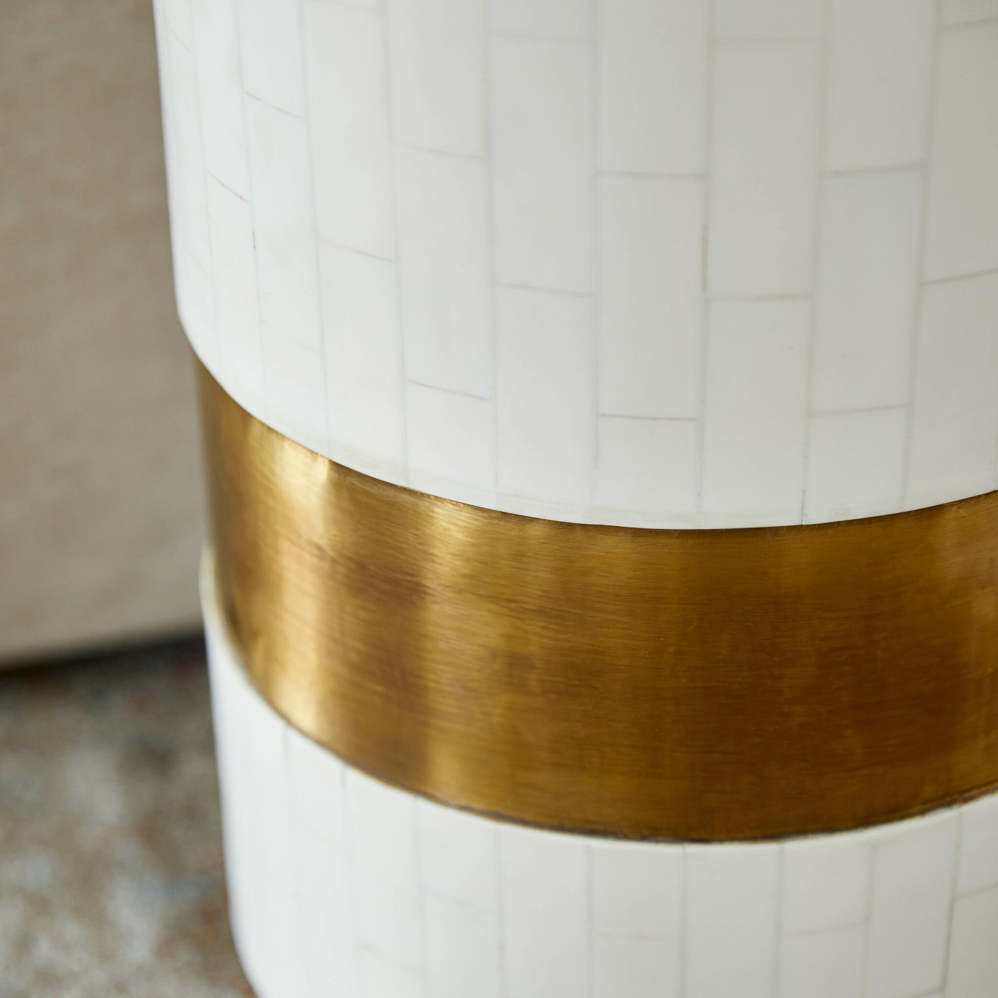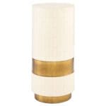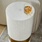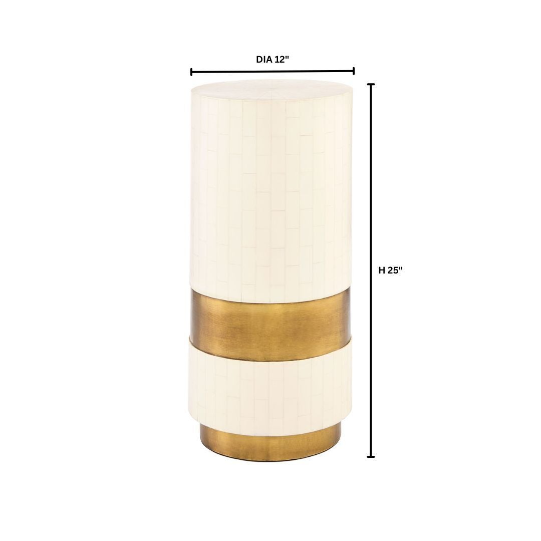 Crafted with unparalleled attention to detail, the Monoco side table features a captivating sunburst pattern top that exudes a sense of timeless elegance. Each piece of faux bone is meticulously hand-cut and individually laid onto the cylindrical body. A gold-painted inset plinthe and accent panel further accentuate its luxurious appeal. The Monoco side table is perfectly scaled for use as an accent table, allowing you to infuse your decor with a touch of elegance and functionality.