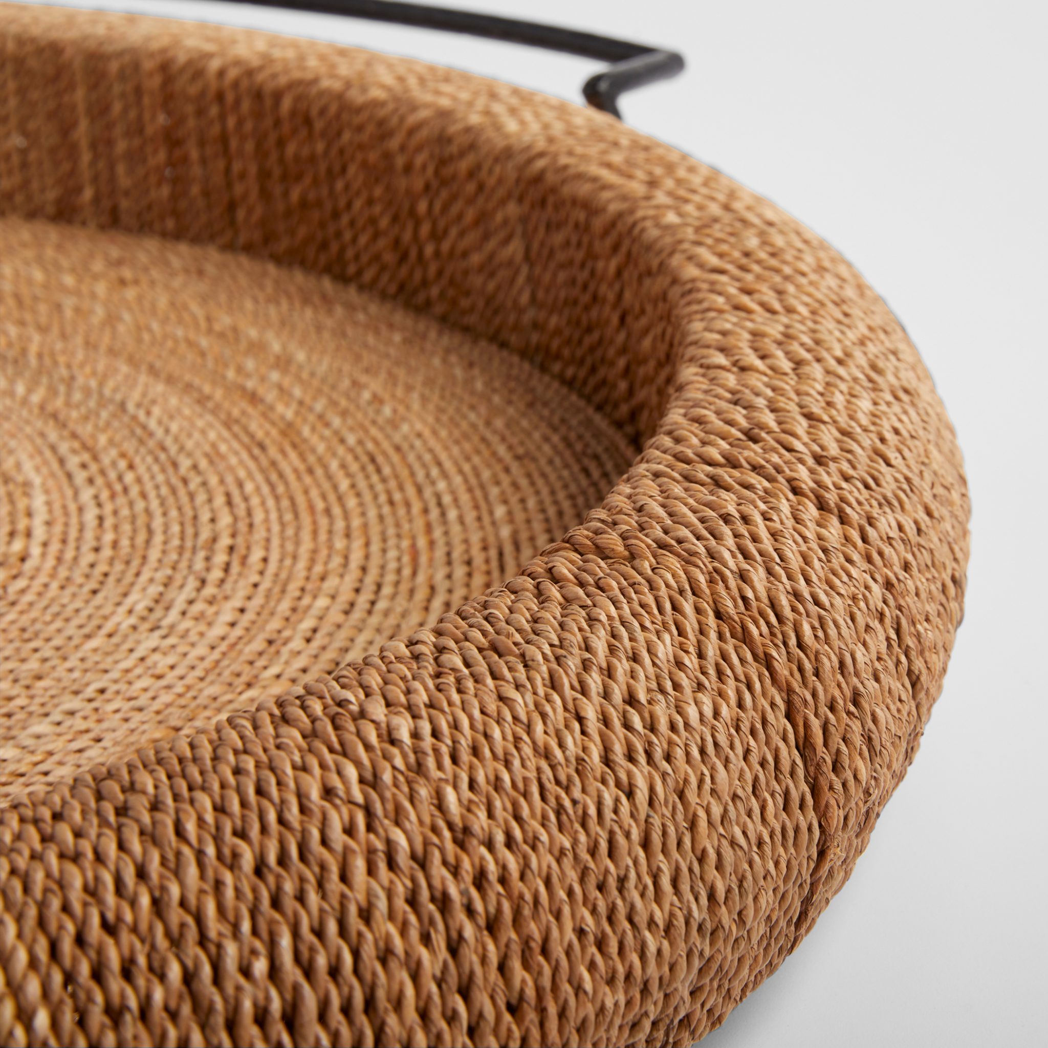 The Montego Trays feature a woven surface with black metal handles, offering generous scale and exceptional quality. Versatile in use, they transition effortlessly from serving trays for entertaining to stylish ottoman trays, all while exuding a relaxed feel with their rich materials.