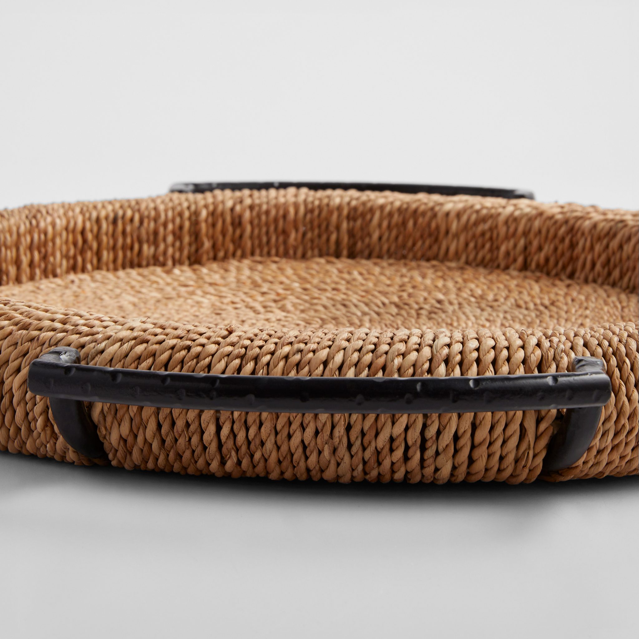 The Montego Trays feature a woven surface with black metal handles, offering generous scale and exceptional quality. Versatile in use, they transition effortlessly from serving trays for entertaining to stylish ottoman trays, all while exuding a relaxed feel with their rich materials.