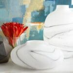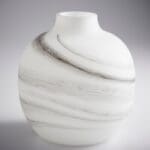 Update your home’s look, add an abstract design to your tabletop ensemble with the Moon Mist vase. Available in three different size options, these subdued white and black swirled accents, feature a smooth surface from top to bottom. These contemporary vessels are ideal for your spring floral arrangements. Perfect for any style design: contemporary, traditional, or transitional, these glassware pieces will fit your needs.