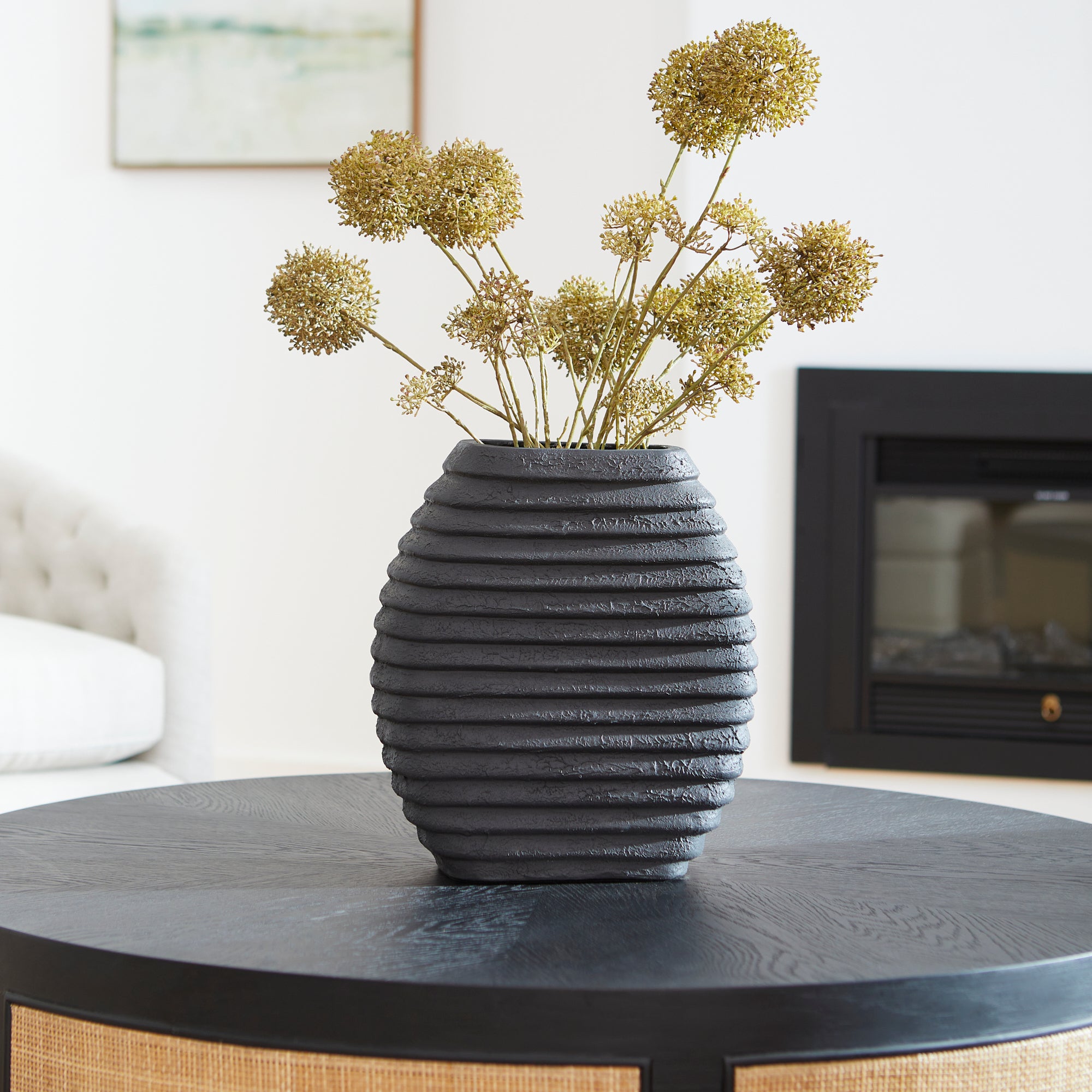 Add minimalist style to your styling with the unassuming Moonstone vase. Artisan crafted from ceramic material; this vessel features a neutral, textured surface pattern. Boasting a modest scale, this compact vessel also features an open mouth top for optimal storage capacity for your floral bouquets or bundled twigs. Perfect for rustic or bohemian styles, it makes a dynamic focal point in any setting.