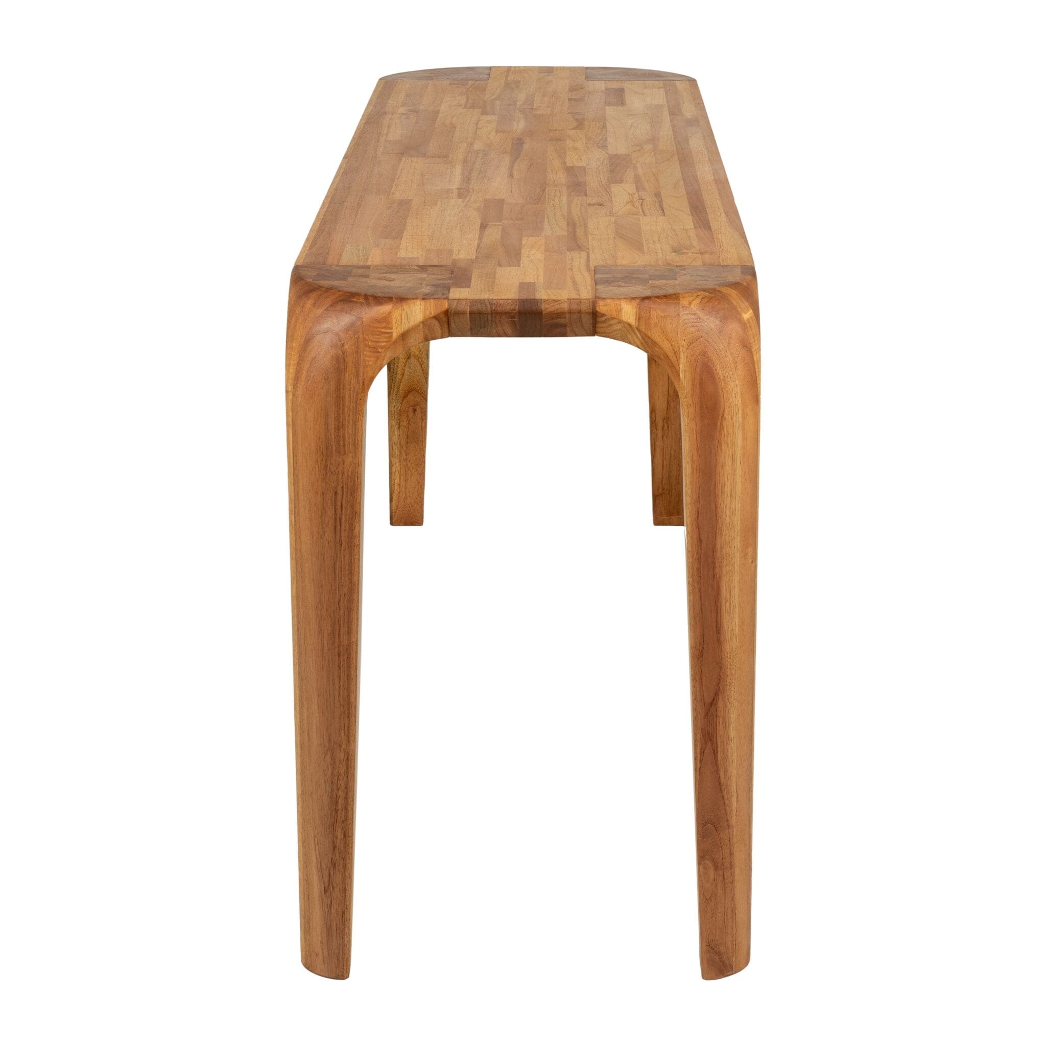 The Nature console table’s design seamlessly curves between the legs and top, revealing unique tonal variations and grain patterns at the intersections. Made from thermo-treated solid Hovenia wood, this console table showcases the raw beauty of wood while retaining its integrity over time.