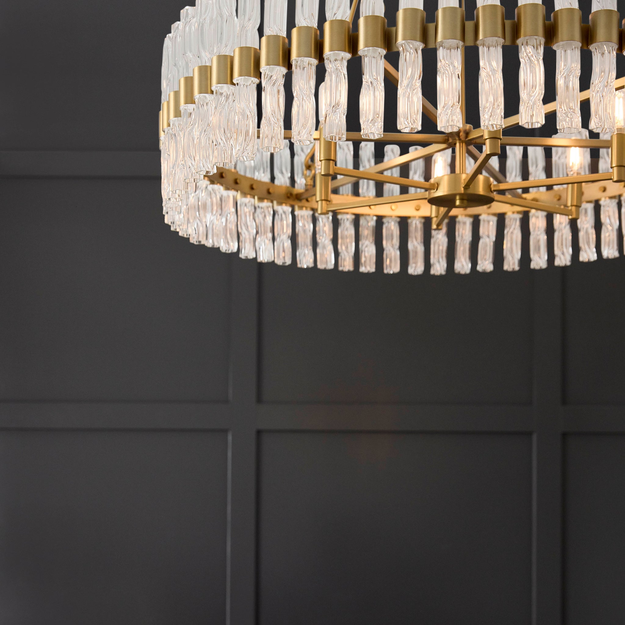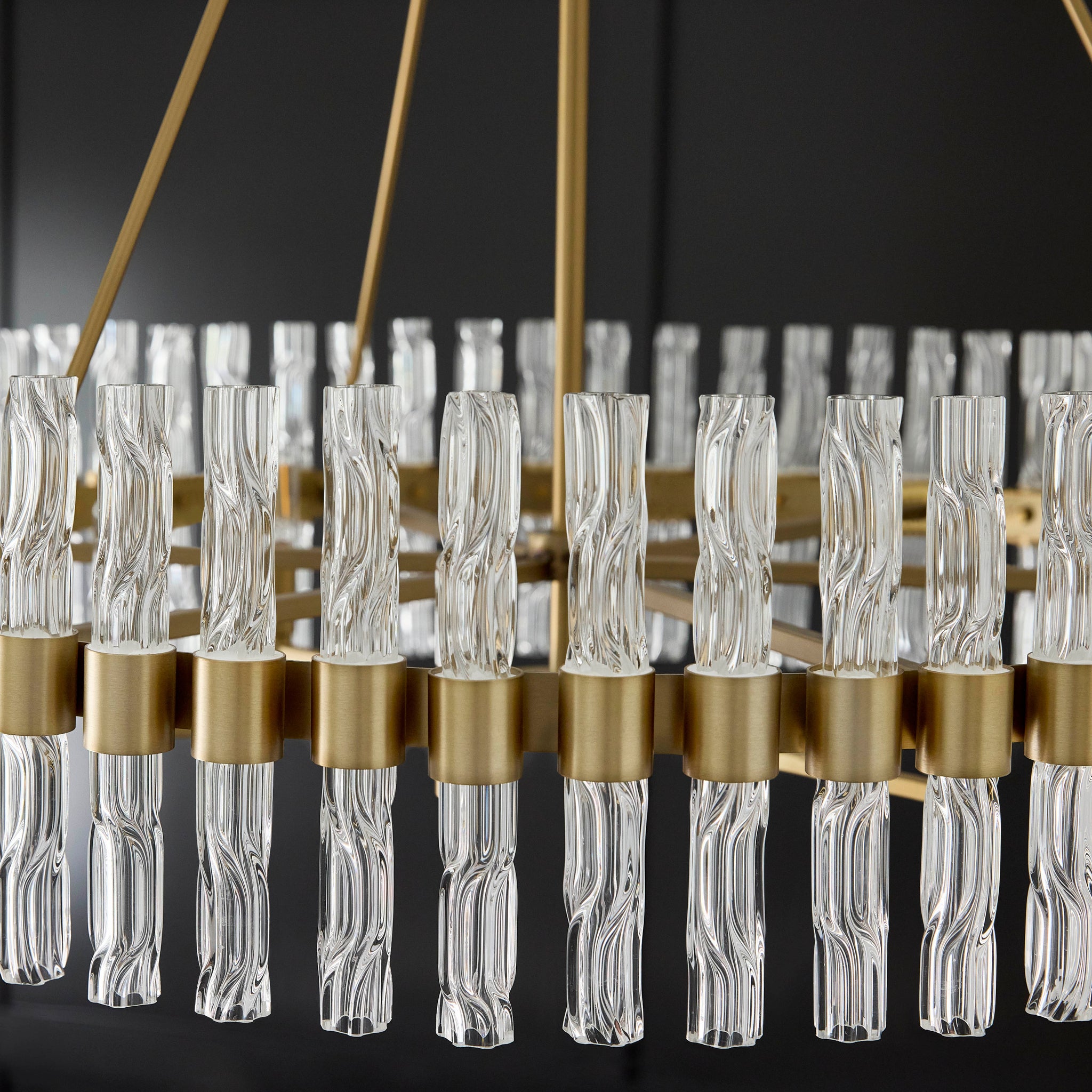 The Cristal series of premier lighting makes a powerful statement through timeless aesthetics. Expert artisans combine traditional craftsmanship with modern innovation to create sophisticated designs that transcend the ordinary. Experience the art of living with the Cristal collection by Cyan Design. The Nobel collection’s signature twisted hollow glass tubes create dynamic light play through a symphony of refraction and reflection. A large aged brass barrel frame supports 60 clear glass pieces in the 6 light chandelier.