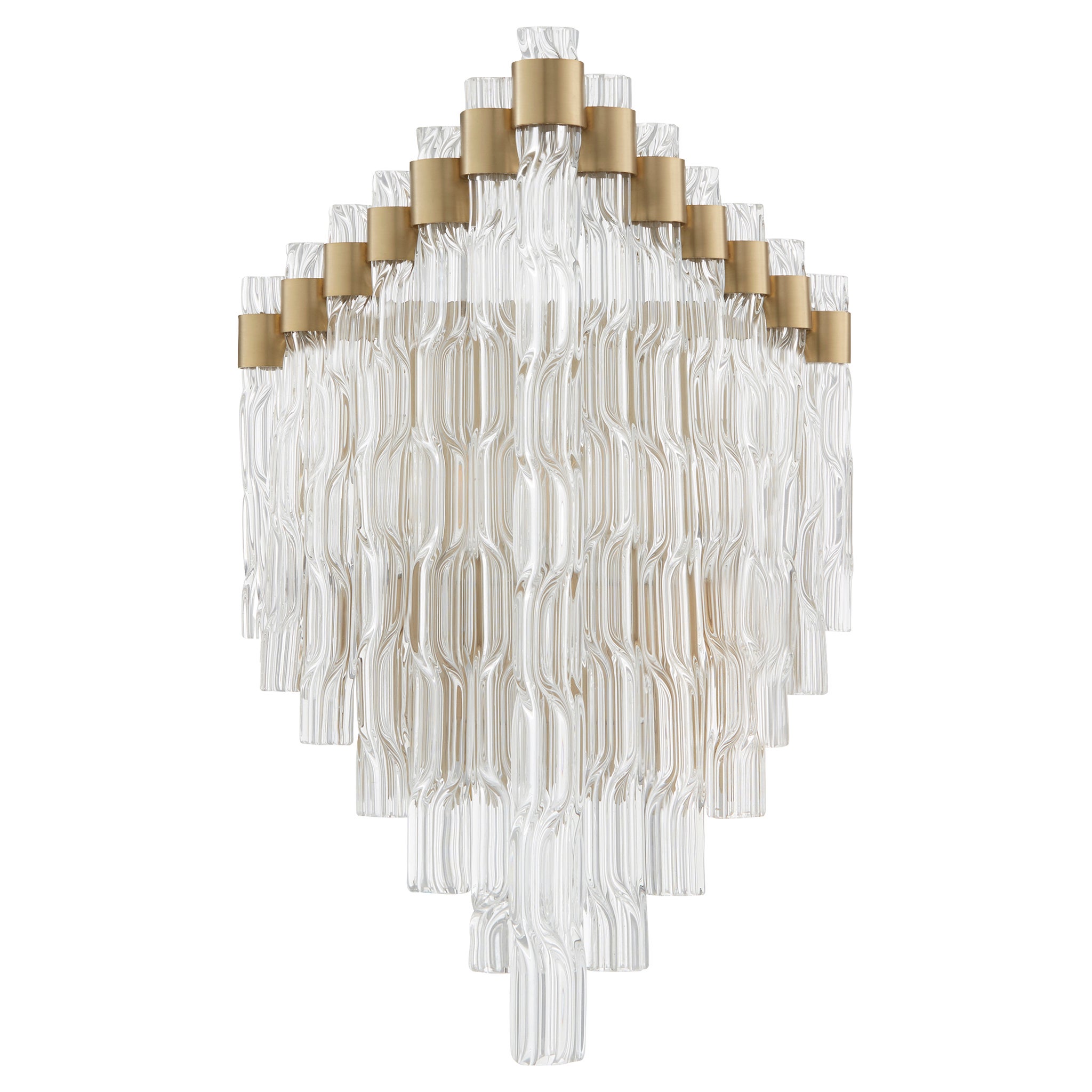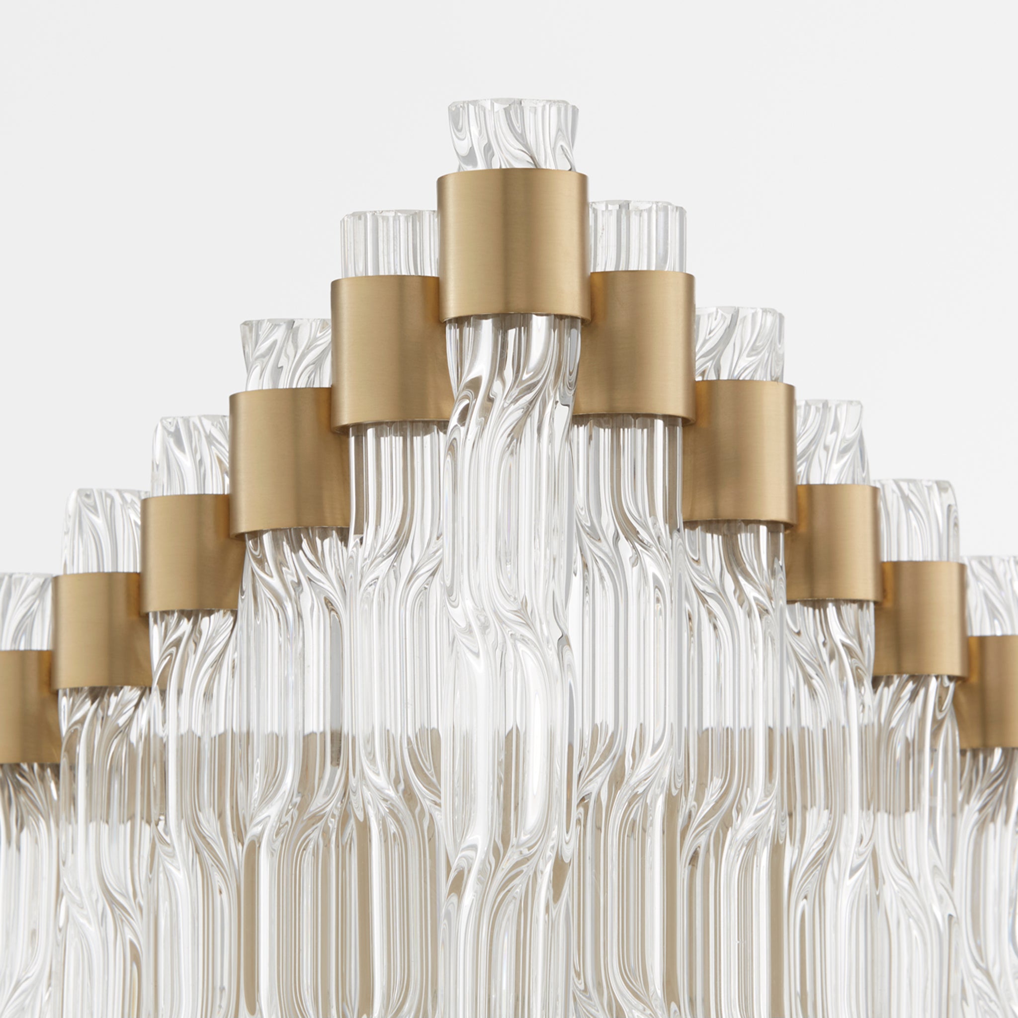 The Cristal series of premier lighting makes a powerful statement through timeless aesthetics. Expert artisans combine traditional craftsmanship with modern innovation to create sophisticated designs that transcend the ordinary. Experience the art of living with the Cristal collection by Cyan Design. The Nobel collection’s signature twisted hollow glass tubes create dynamic light play through a symphony of refraction and reflection. An aged brass v-shaped frame supports 13 clear glass pieces in the 1 light wall sconce.