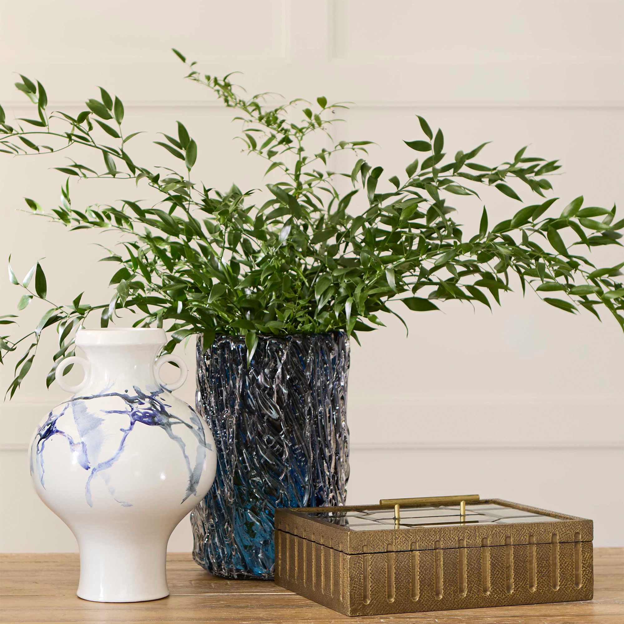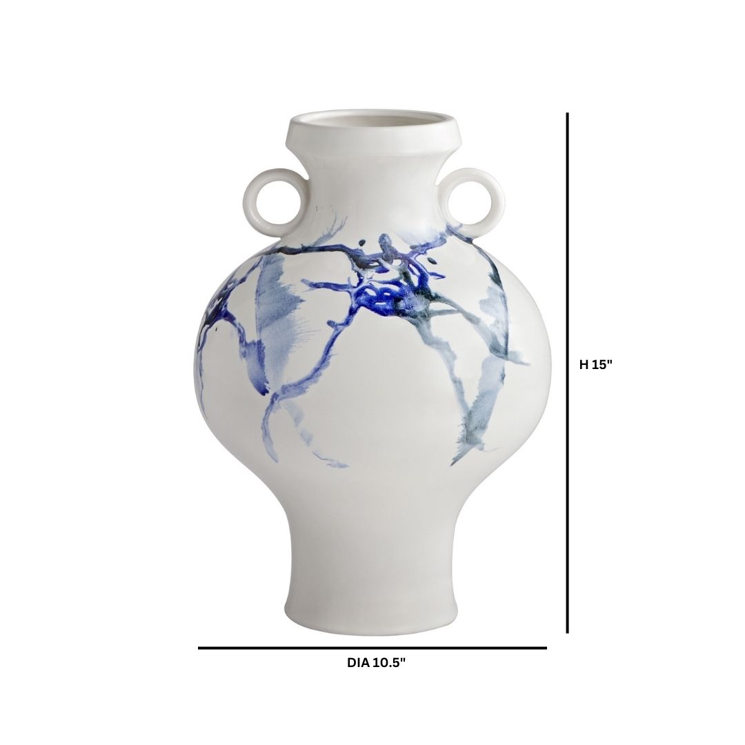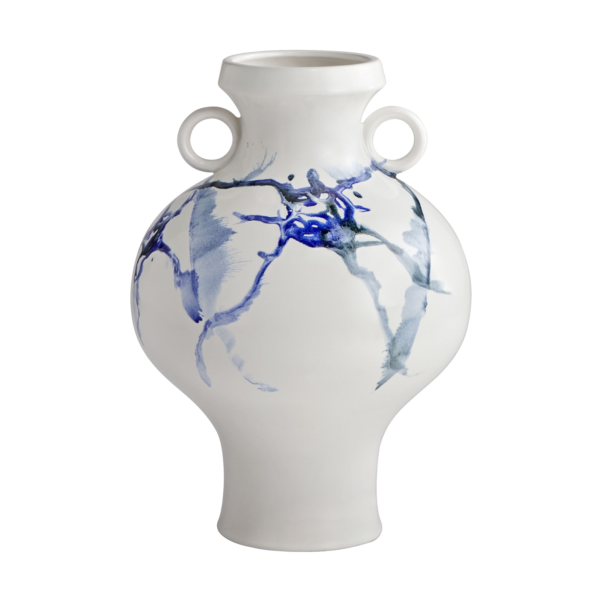 The Nola Collection of ceramic vases presents a fusion of tradition and innovation through the emulation of the ancient technique of horse hair raku. A cobalt glaze is hand-applied over a clean white canvas, mimicking the method’s intricate patterns and organic textures. This unique glazing process generates a sense of history and artistry that transcends time. The Nola vases boast a large-scale design, a neo-traditional shape, and two mirrored rows of ringlet detailing along the neck. Experience the perfect harmony of tradition and modernization, where each vase tells a story of craftsmanship and creativity. Available in four sizes.