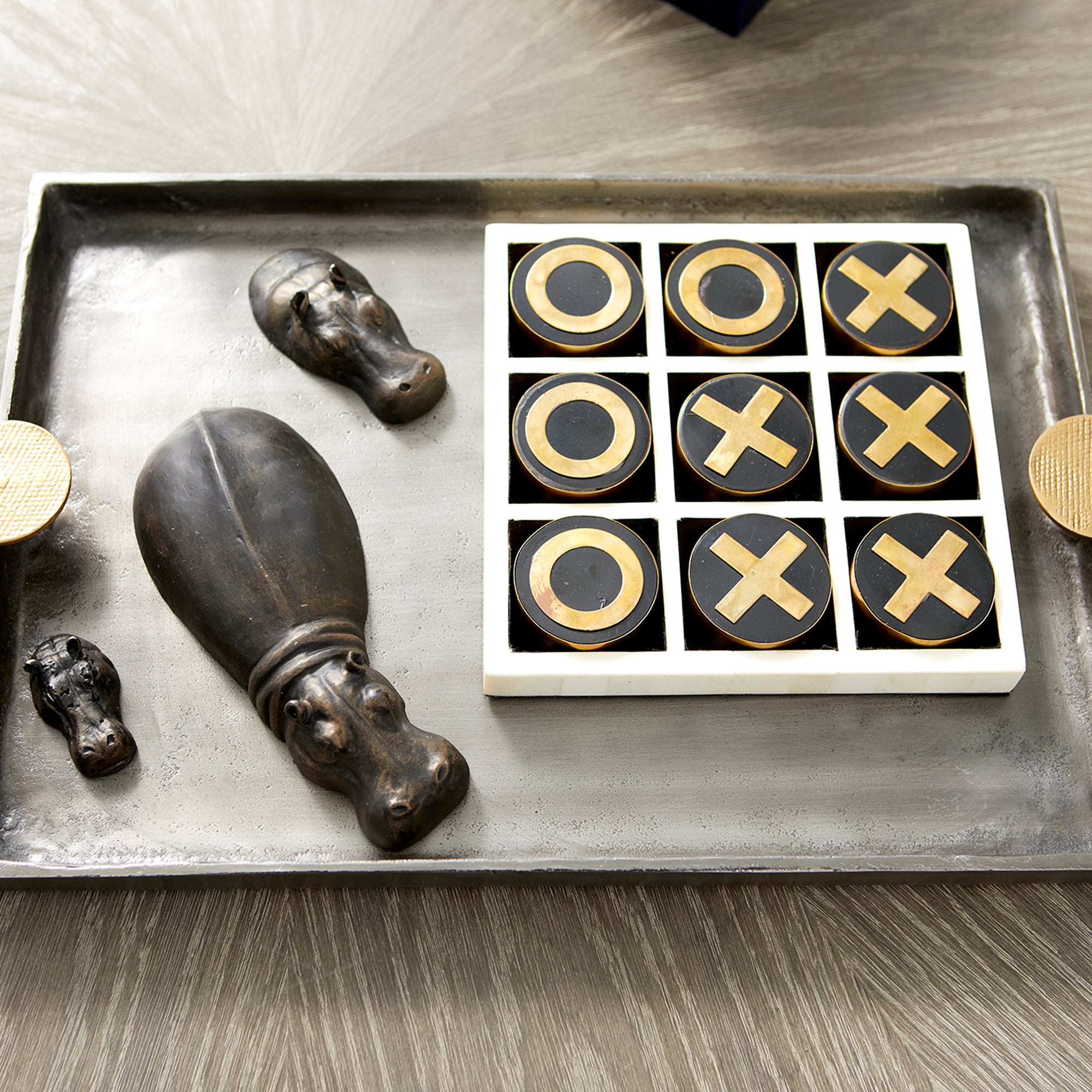 Turn a classic children`s game into a bold art piece with this tic-tac-toe bone , resin and iron sculpture piece. Bring a dose of character and entertain friends and family in the same moment with this fully functional game of X`s and O`s.
