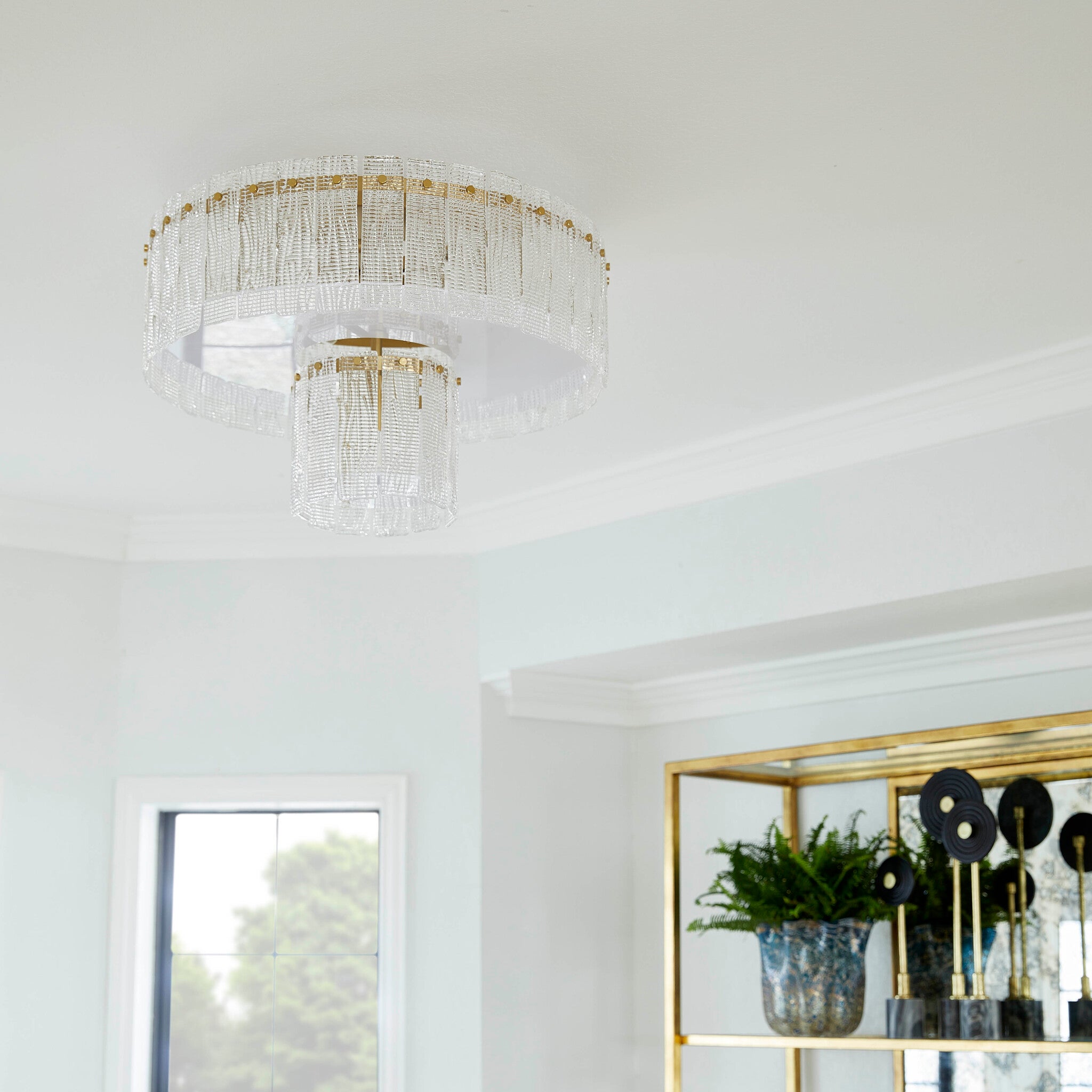 The Cristal series of premier lighting makes a powerful statement through timeless aesthetics. Expert artisans combine traditional craftsmanship with modern innovation to create sophisticated designs that transcend the ordinary. Experience the art of living with the Cristal collection by Cyan Design. Inspired by Art Deco styling, the Othello collection boasts hand-pressed textured glass panels that provide a warm, subtle glow. Aged brass arms form large and small overlapping cylinder frames that support 48 clear glass pieces in the 7 light ceiling mount.