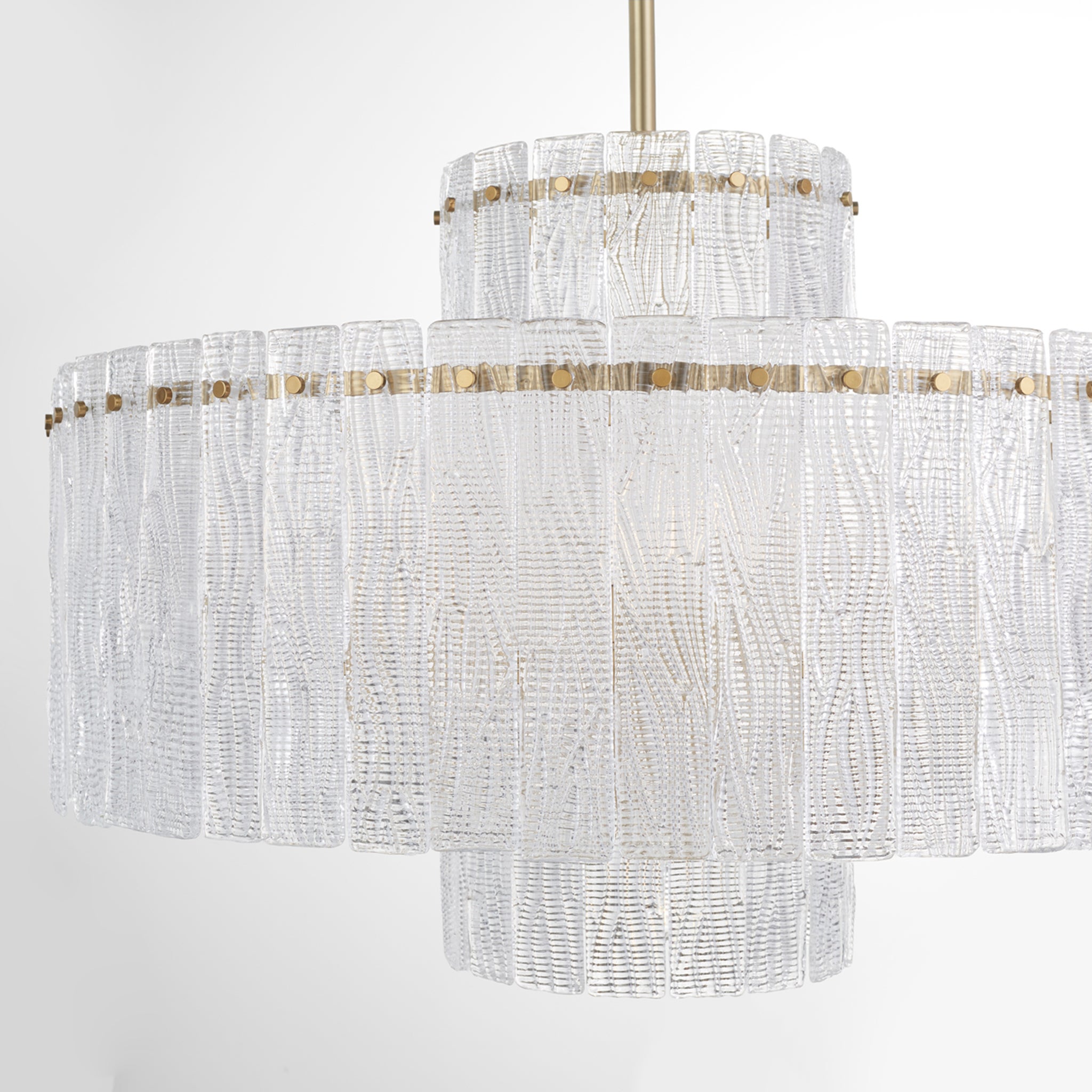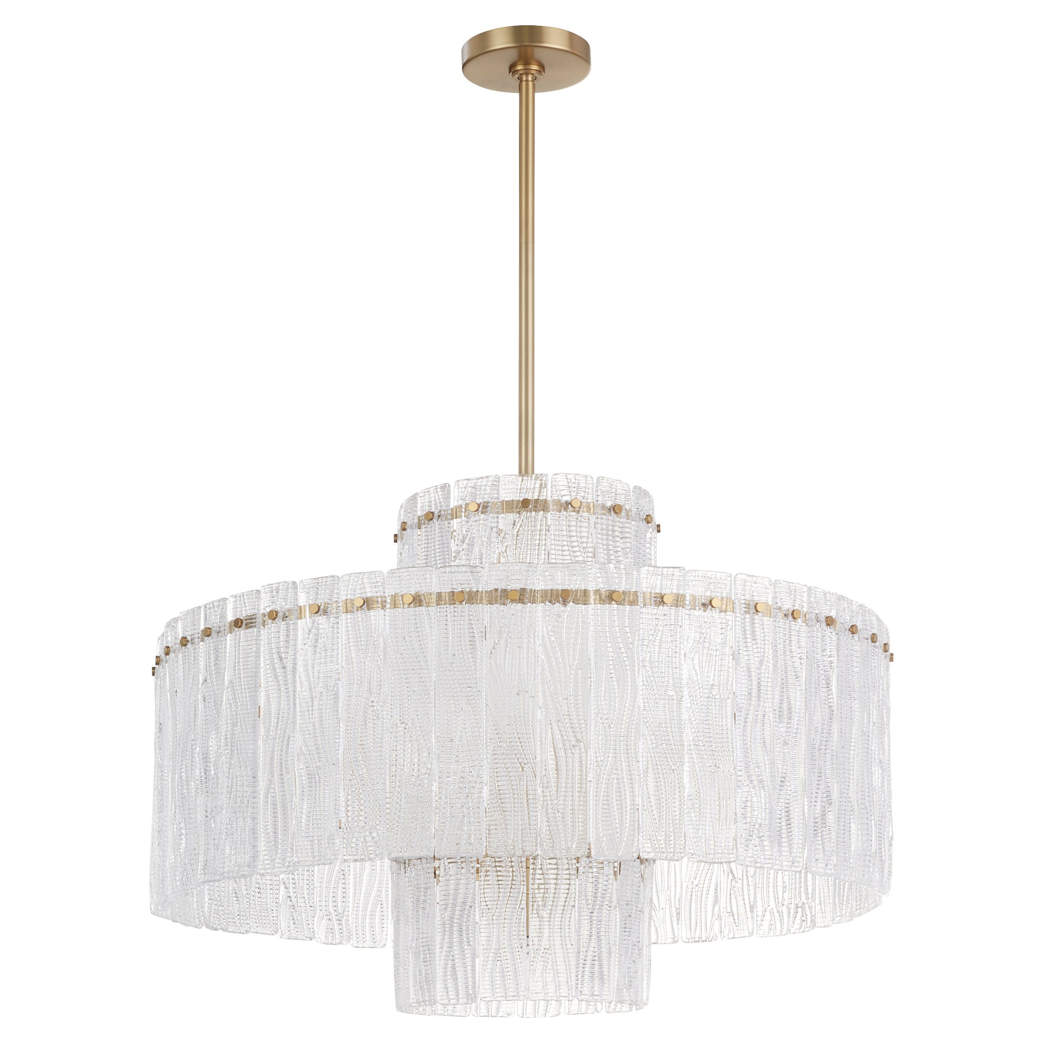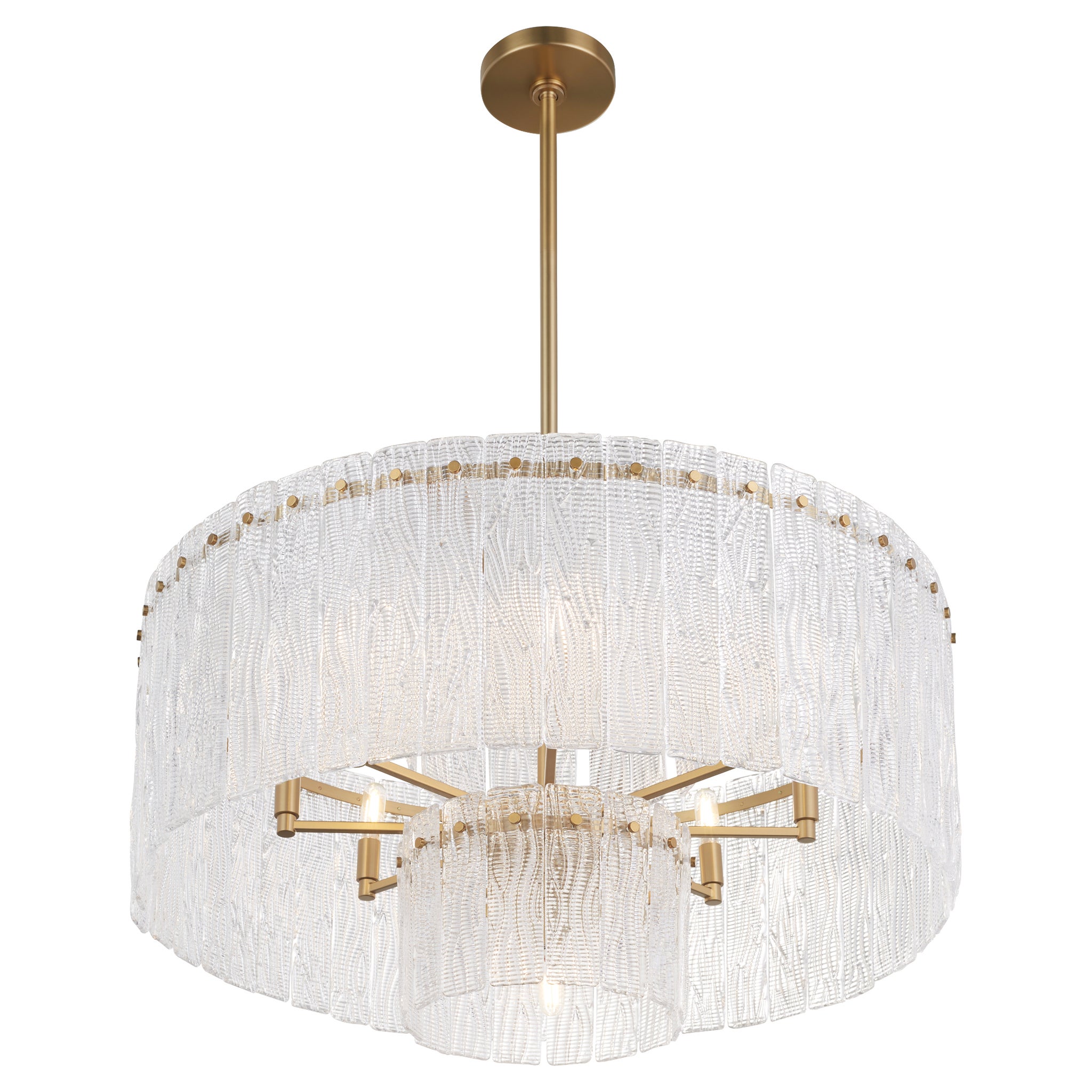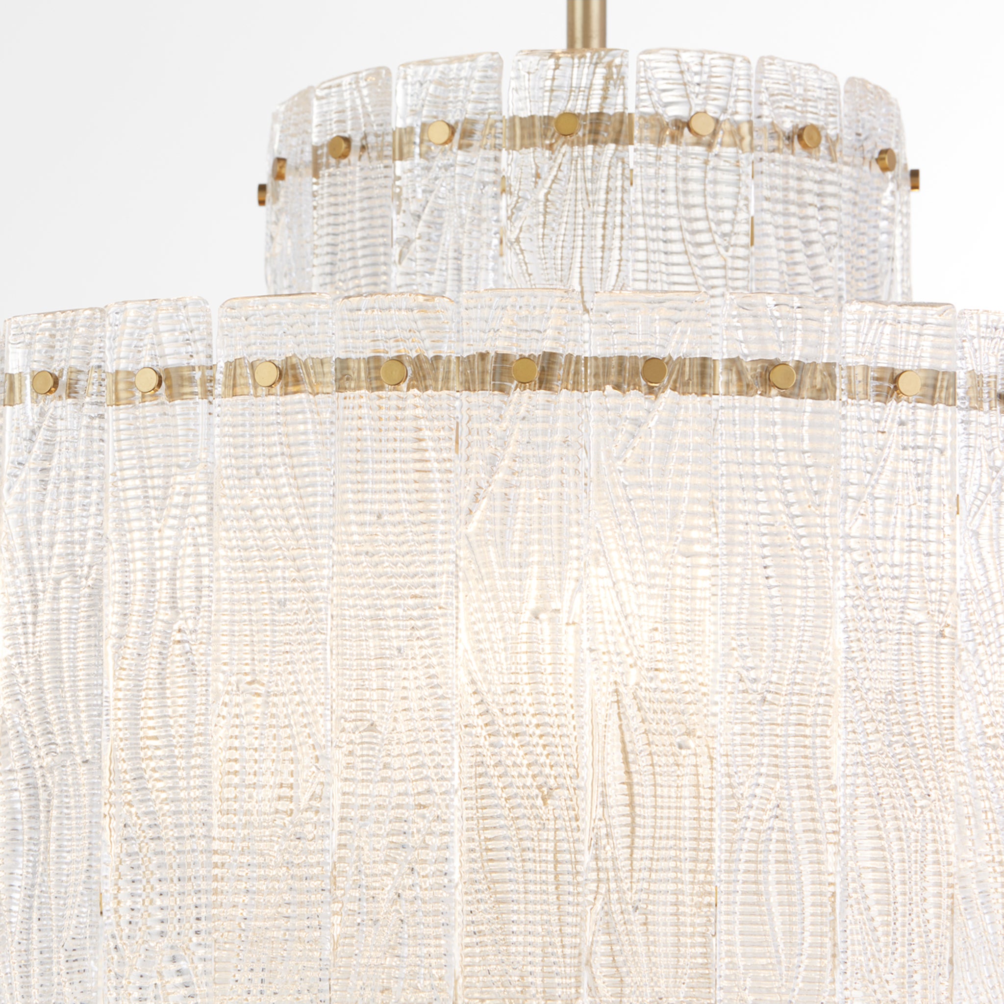 The Cristal series of premier lighting makes a powerful statement through timeless aesthetics. Expert artisans combine traditional craftsmanship with modern innovation to create sophisticated designs that transcend the ordinary. Experience the art of living with the Cristal collection by Cyan Design. Inspired by Art Deco styling, the Othello collection boasts hand-pressed textured glass panels that provide a warm, subtle glow. Aged brass arms form large and small overlapping cylinder frames that support 80 clear glass pieces in the 9 light chandelier.