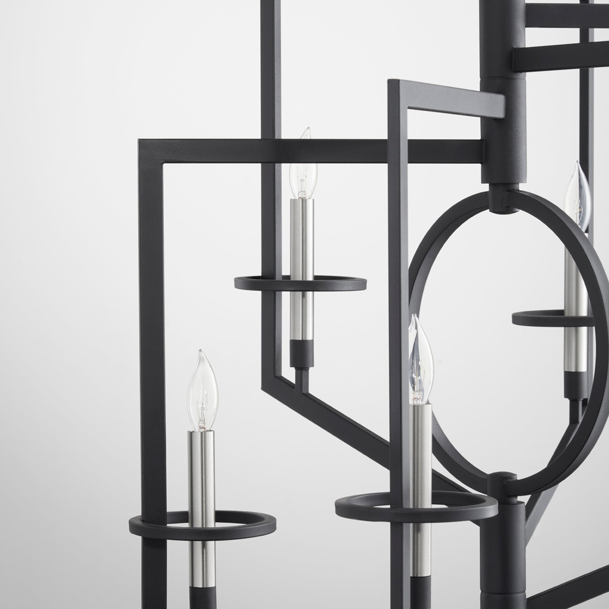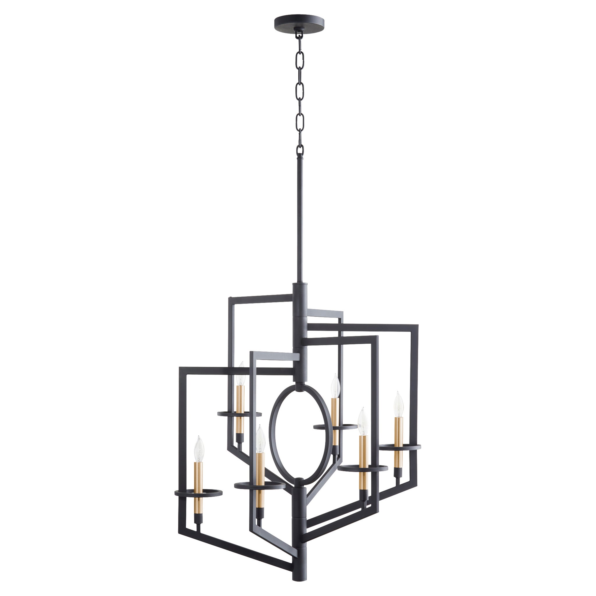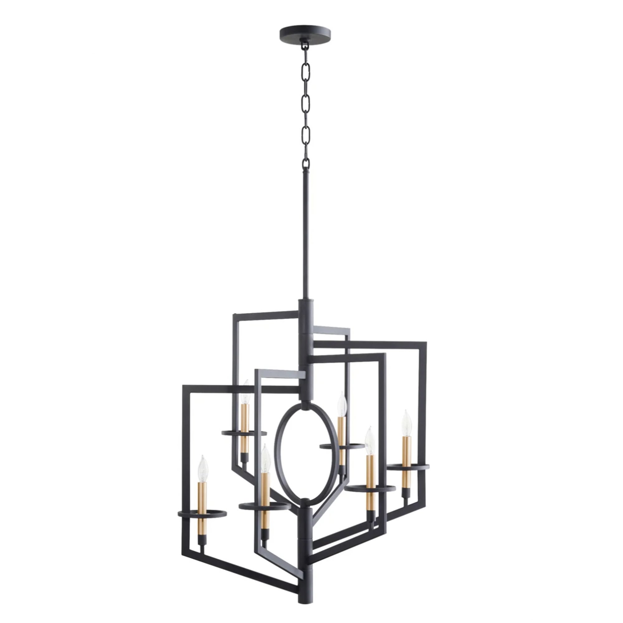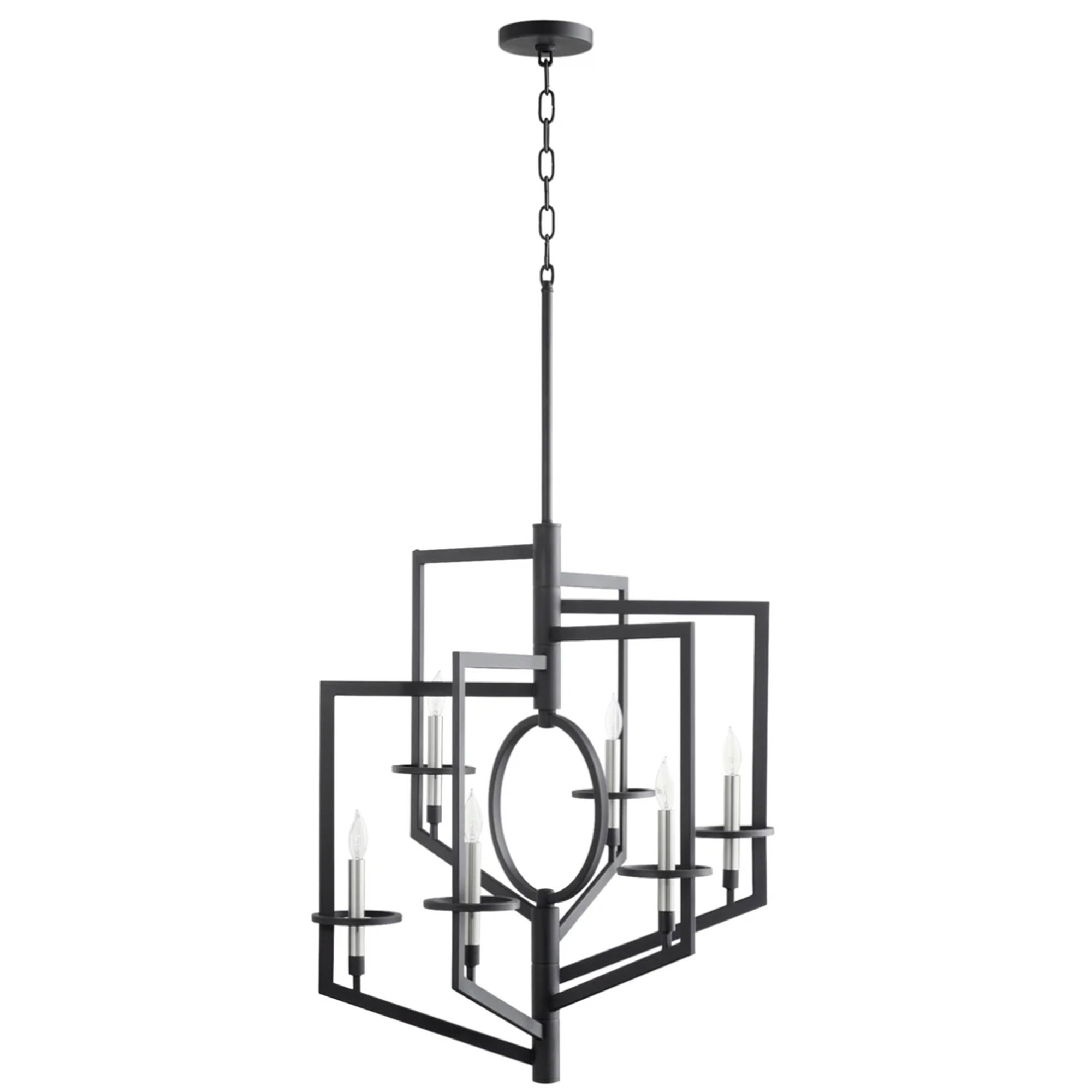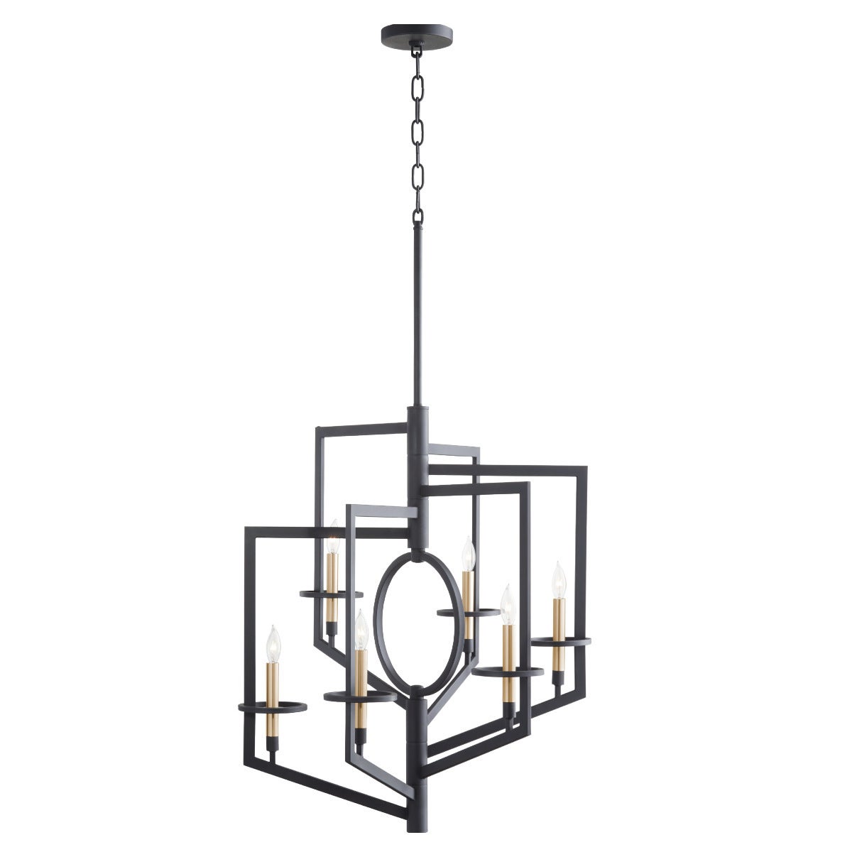 The Oxalis Chandelier is a modern twist on a traditional design. Switch up your look with included interchangeable aged brass, black, and satin nickel candle sleeves. This chandelier is a fashionable, decorative lighting fixture, perfect for residential and commercial living spaces.