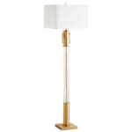 The Palazzo floor lamp is the epitome of contemporary elegance. This lamp boasts a generous proportion in its boxed, linen shade. A single 100w medium base bulb provides ample illumination from the light source. Coupled with a radiant clear frame, with aged brass accents to complete the look of this luminary. The Palazzo floor lamp is perfect for any modern bedroom, transitional entryway, or mid-century modern living room ensemble.