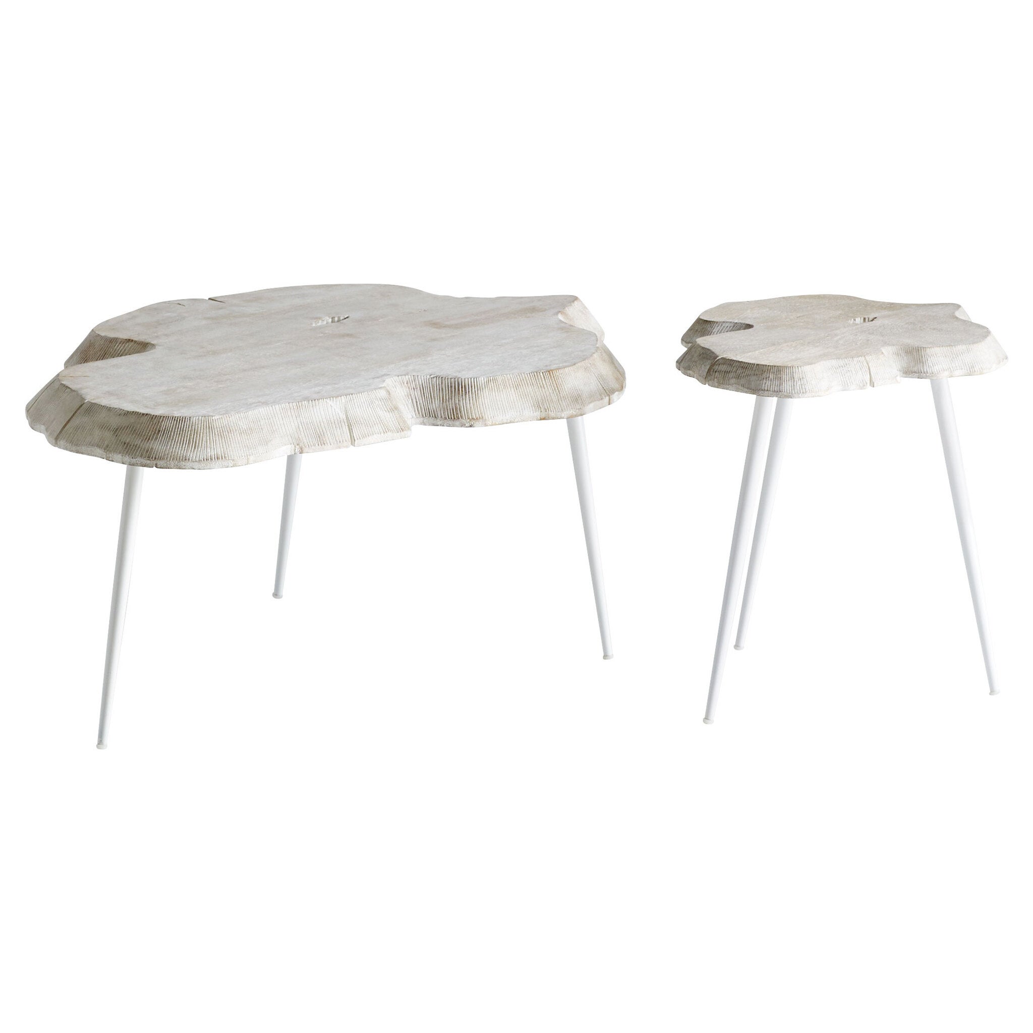 On-trend with the latest in d?cor, the Palmer cocktail table dons a distinctive shape and natural allure. The sleek iron legs support a white finished, robust live edge cross-section of an Ardu tree trunk. The Palmer cocktail table is a statement piece fit for any application in any bedroom, office, living room, entryway, or commercial living space.