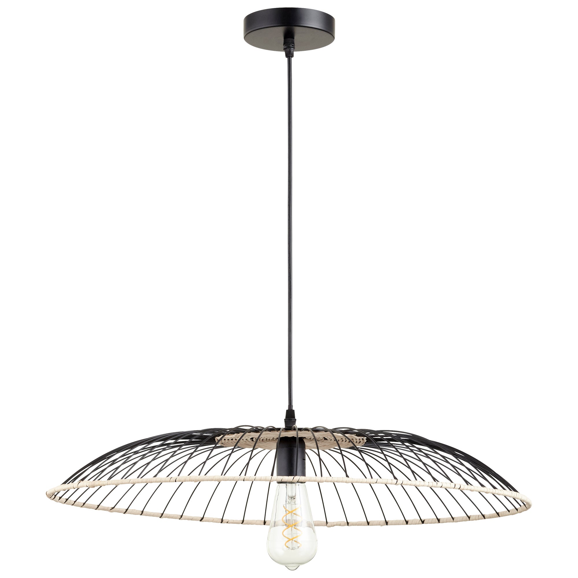 Illuminate your ensemble in fun and funky, eclectic style with the one-light Parasol pendant. This matte-black pendant is crafted from a fusion of iron and rattan materials, featuring an open-frame canopy that liberally diffuses light emitted from a single 60W medium based bulb. The design allows for the emission of an abundance of ambient light in every direction while offering a whimsical look fit for any modern, transitional, or boho-inspired space. Ten feet of adjustable cord gives some variety in height, allowing you to tailor to your space`s needs. Stack three over an island for a warm glow throughout your kitchen, or line your hallway with a grouping for the perfect amount of light to guide your houseguests.