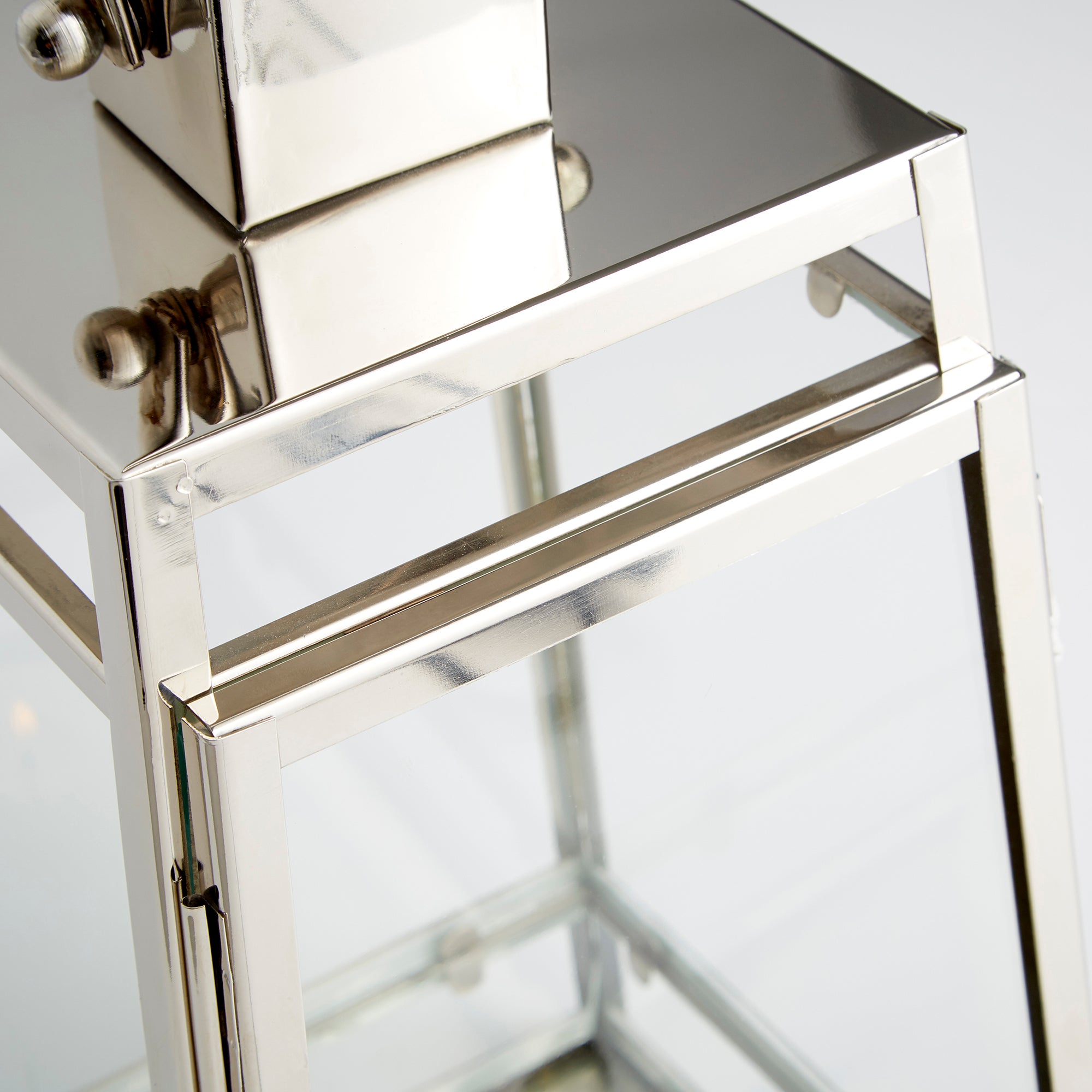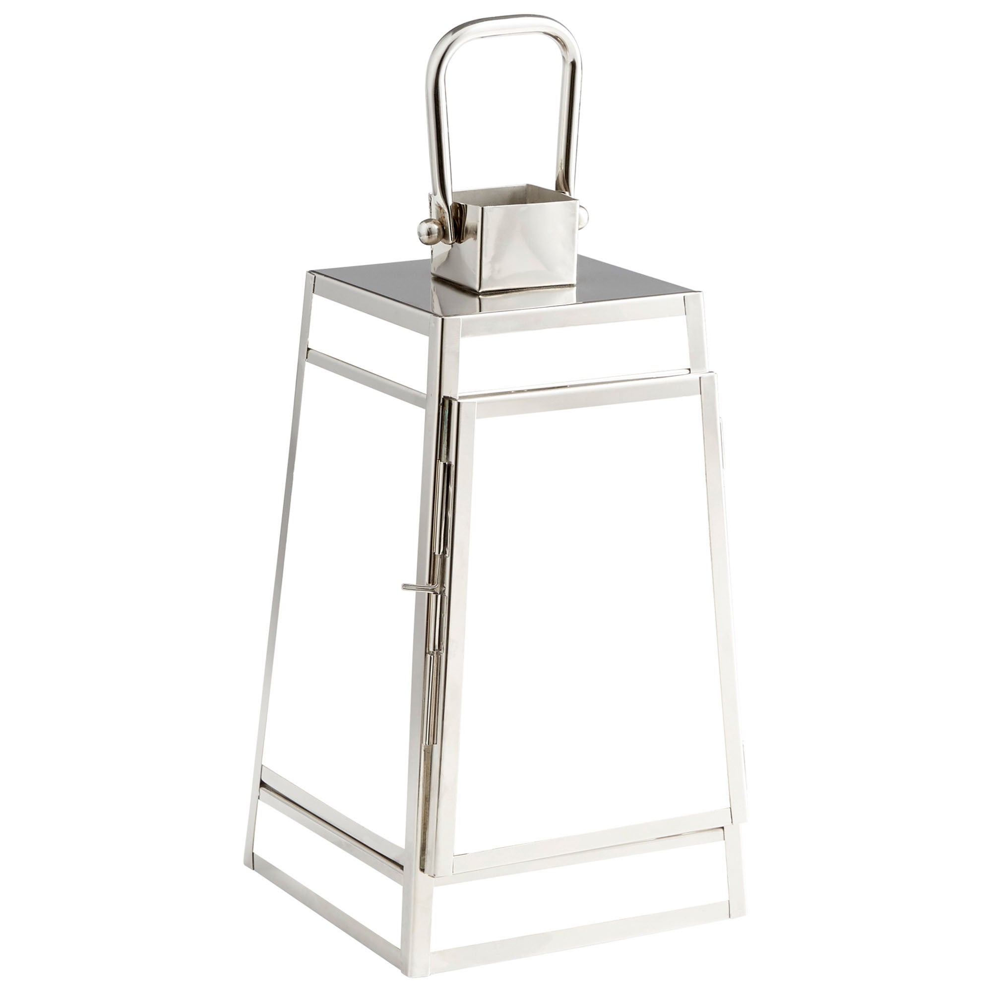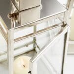 Dress up a etagere or a fire place with this glass candleholder. Boasting lantern-inspired style, the piece gleams in a nickel finish. Choose a favorite candle to place within.