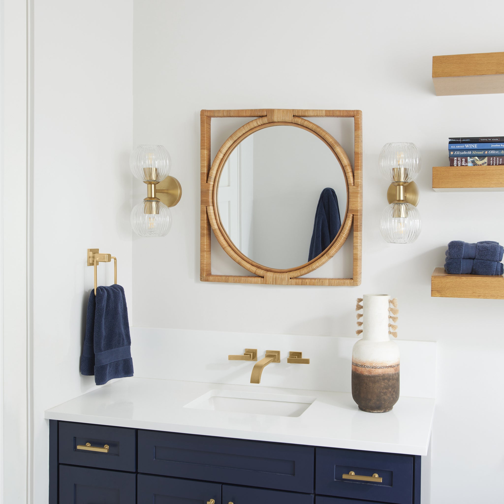 Named after an island off the east coast of Africa, the Pemba mirrors deliver energetic warmth through natural features. Split rattan is hand-wrapped over a steam-bent rattan pole frame of two segmented concentric circles with a mirrored glass center. Hang over a bathroom countertop or in a living room to add warmth and depth. Available in two sizes.