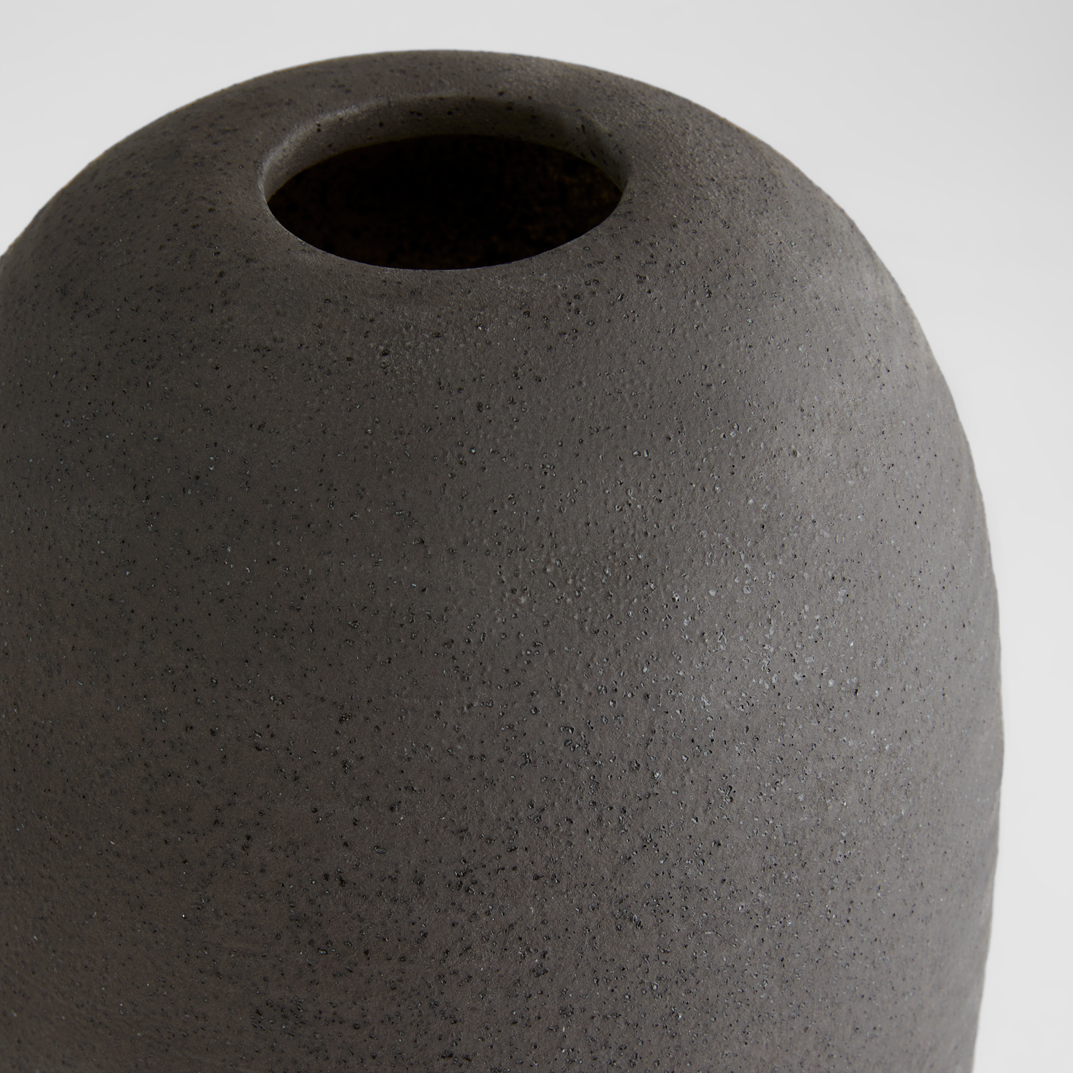 This vase?s distinct bee-hive contour is contrasted by ridges that extend from the brim to the base. It?s black textured surface imbues this vase with an organic aesthetic. This vase is perfect for your fire mantle plans, coffee table styling, or entryway console decor. Great for commercial as well as residential use.