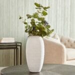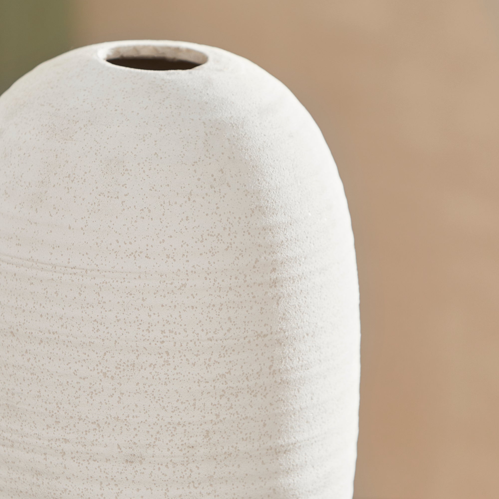 This vase’s distinct bee-hive contour is contrasted by ridges that extend from the brim to the base. It’s matte pastel tone imbues this vase with an organic aesthetic. Its unique visual appeal means that it can be featured with or without any addition to its bowl. Great for living rooms, bedrooms, kitchens, office spaces and commercial residences.