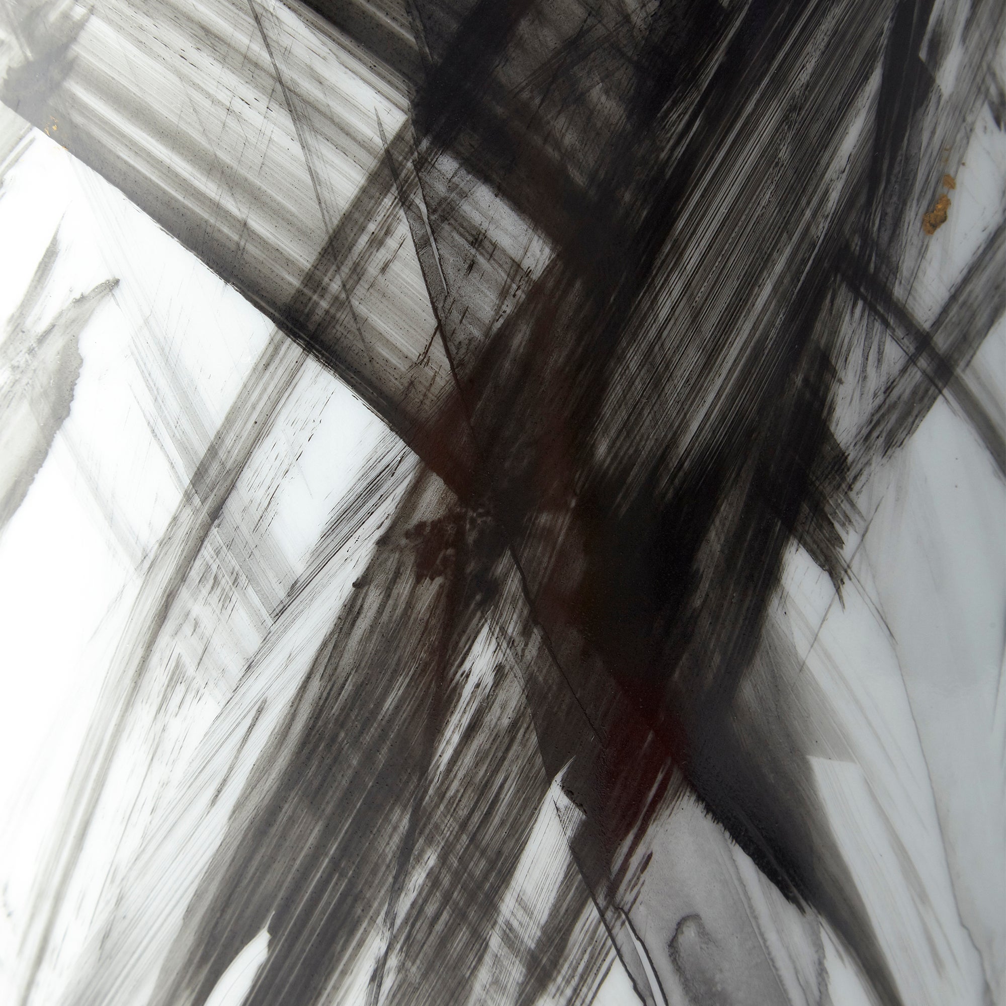 This small abstract art inspired container is a fine addition to stylish storage solutions. Contemporary white and bold black sweeps of color make this ceramic charmer ideal for a thoroughly modern kitchen or bathroom.