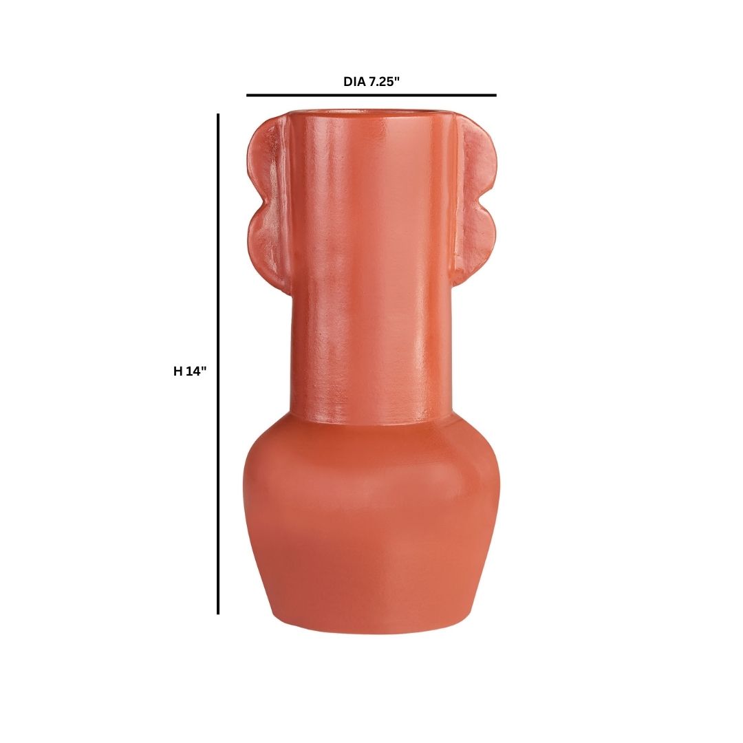 Each piece in the Potteri collection showcases primitive shapes and a raw, hand-shaped texture. Crafted from low-fired terracotta, the Potteri vases exude a rustic charm with unique imperfections and cayenne finish. While not water-tight, these pieces are perfect for adding a touch of natural beauty to your space. Embrace the artistry and simplicity of the Potteri Collection and infuse your home with the soulful essence of handcrafted beauty. Available in three sizes.
