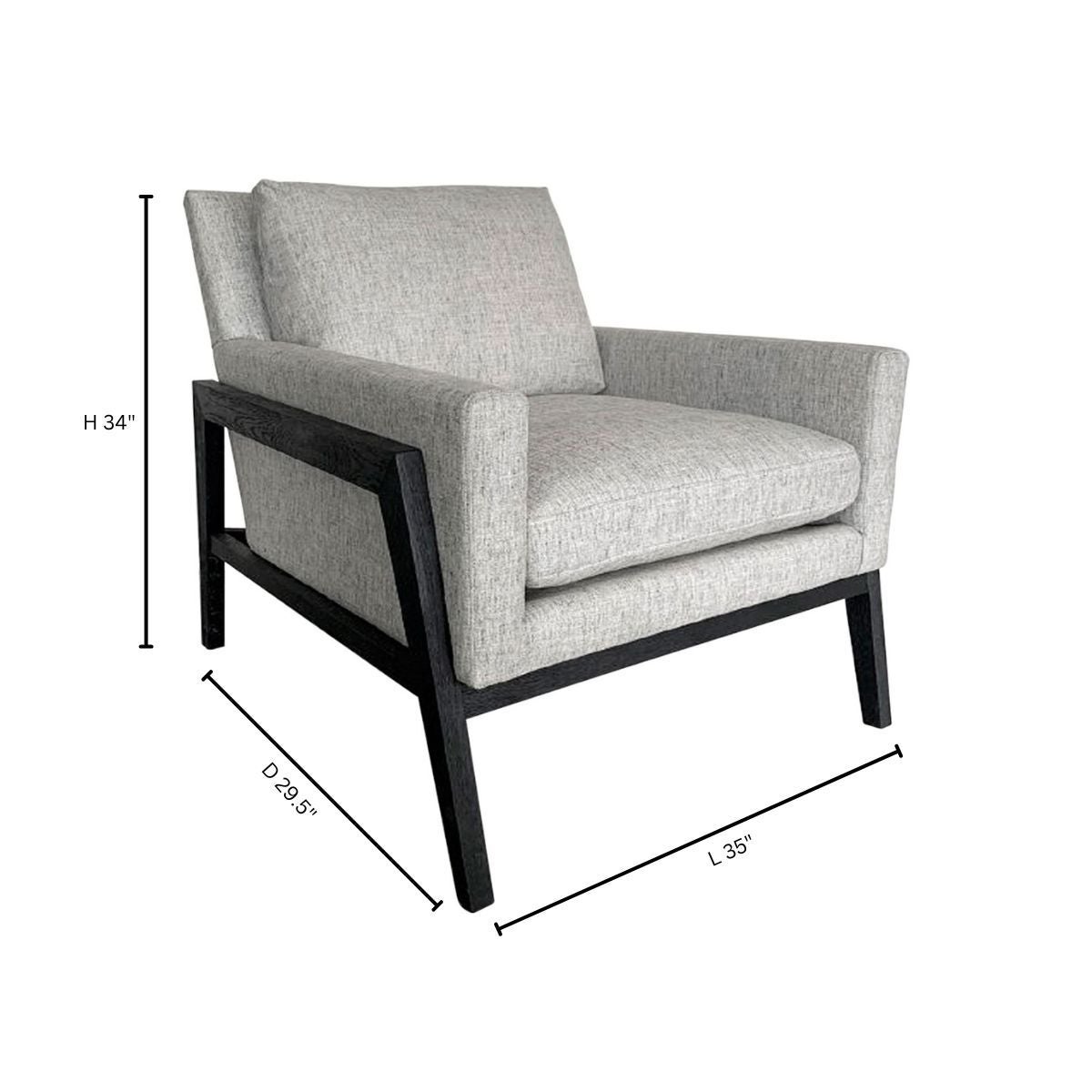 Complete the look of your living room or den while adding a new level of comfort with the Presidio accent chair. Perfectly at home in contemporary or transitional aesthetics, the frame of this piece is crafted from solid wood in a moody black finish and upholstered in grey polyester that is filled with foam. It features a cushioned back and flared arms. To care for this piece, we recommend only spot cleaning as needed.