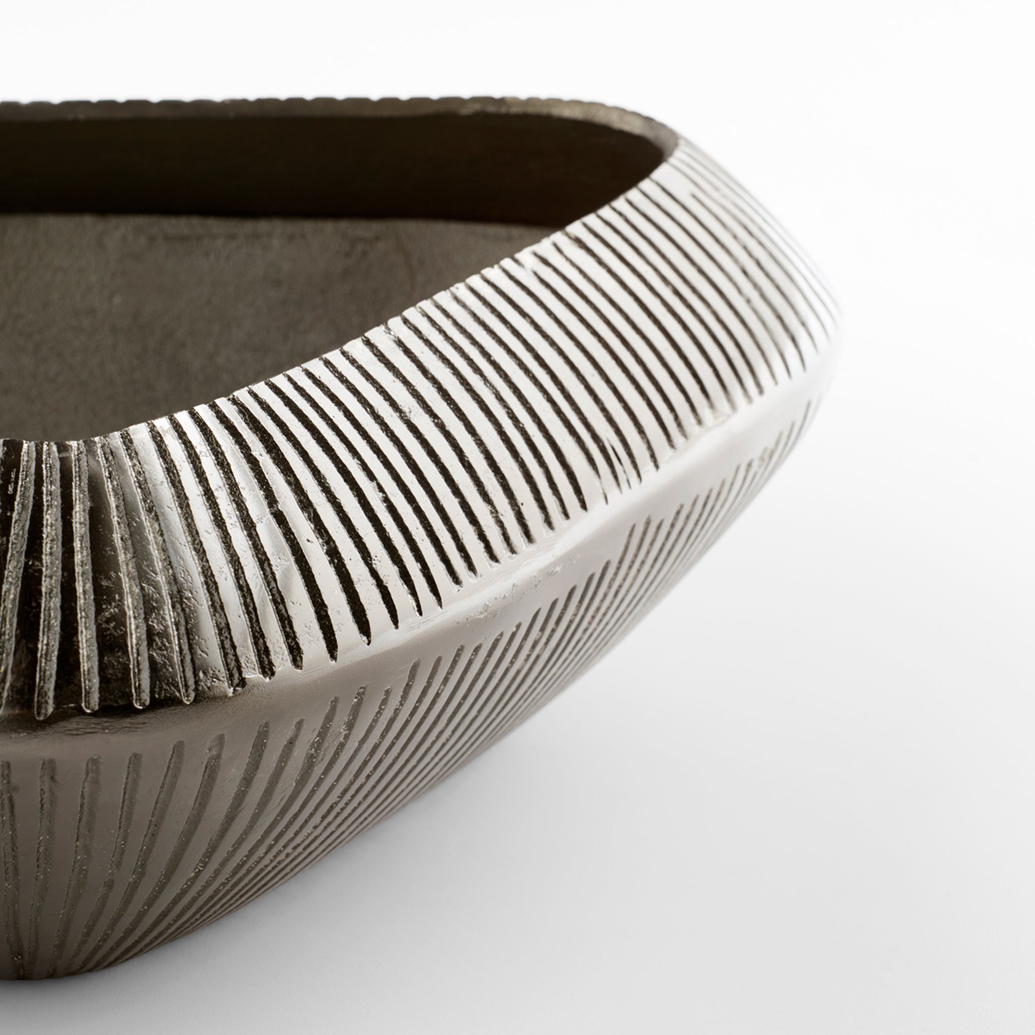 The Prism series is a collection of heavily textured and striated decorative bowls. Its signature triangular shape is constructed of durable cast aluminum in an antique bronze finish. Turn heads by showcasing these vessels as a table top accessories or by placing them on a large bookshelf.
