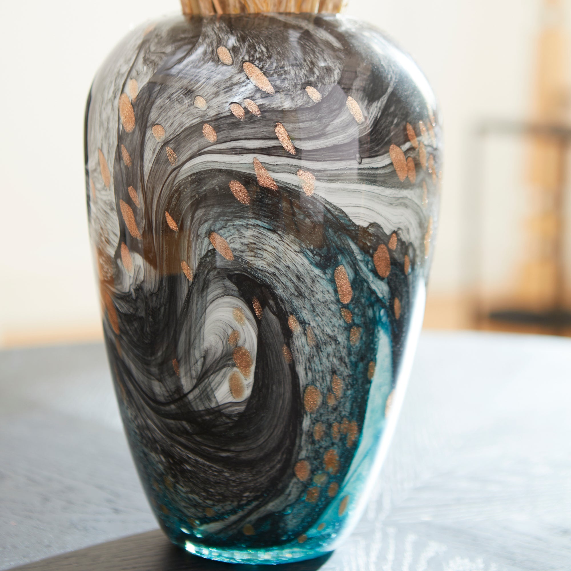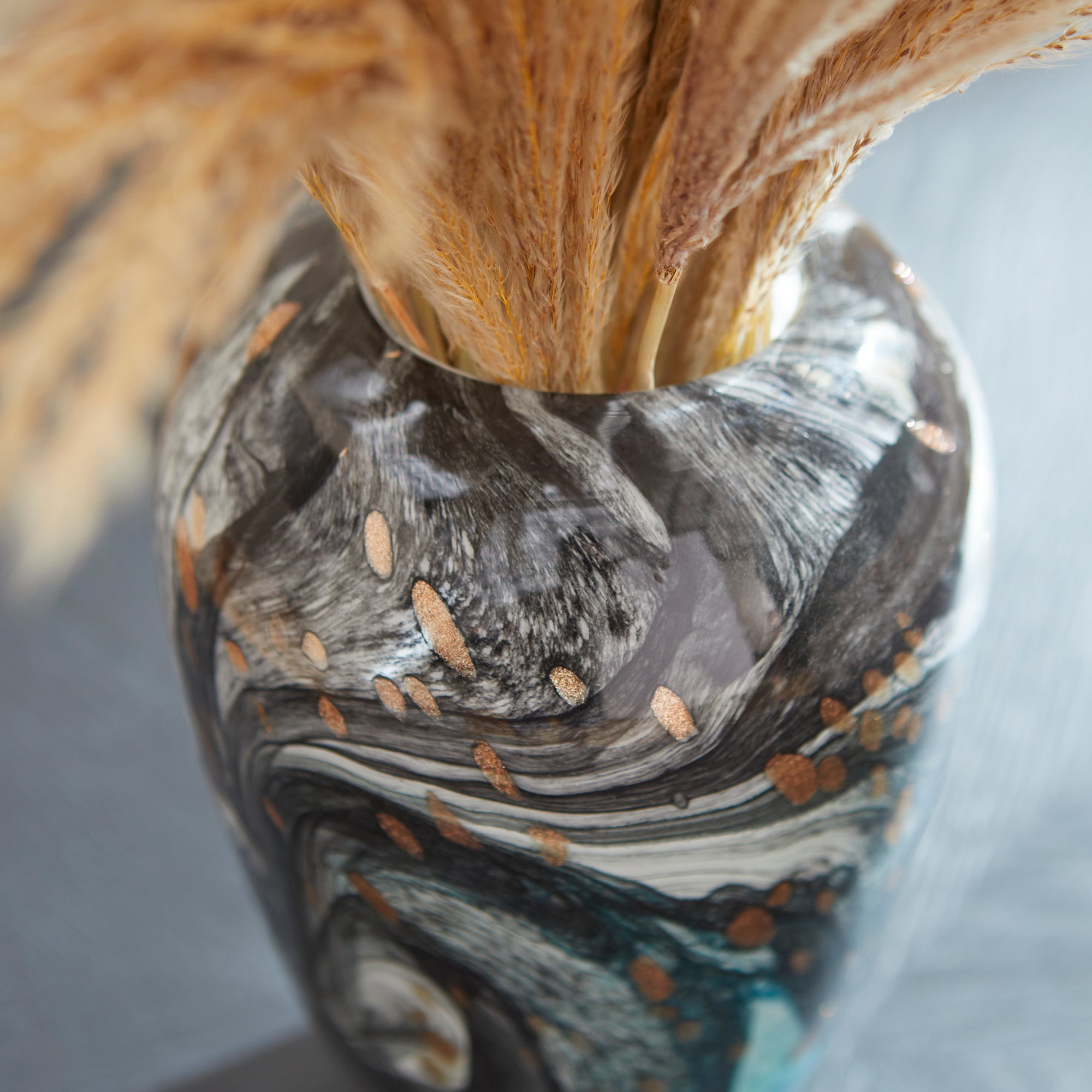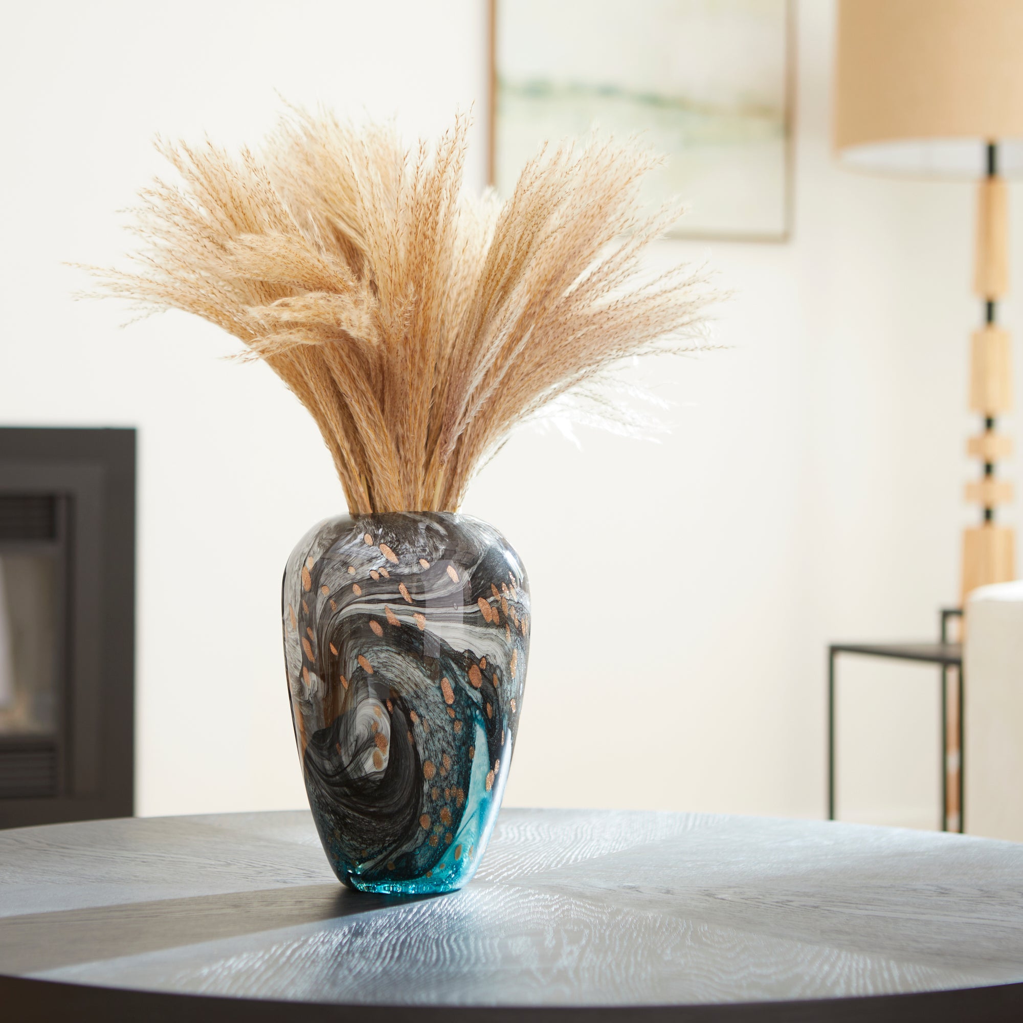 Color can make your space stand out, especially when displayed in unique patterns and formations. For this reason, the Prismatic tabletop vase is sure to add an instant boost to your design plans. Coated in a stunning multicolored gradient finish, this bud-shaped vessel showcases blue, green, grey, and gold splashes. Available in three size options, these rounded vases can create a head-turning display on your dining room table, living room coffee table, or any office bookshelf display.