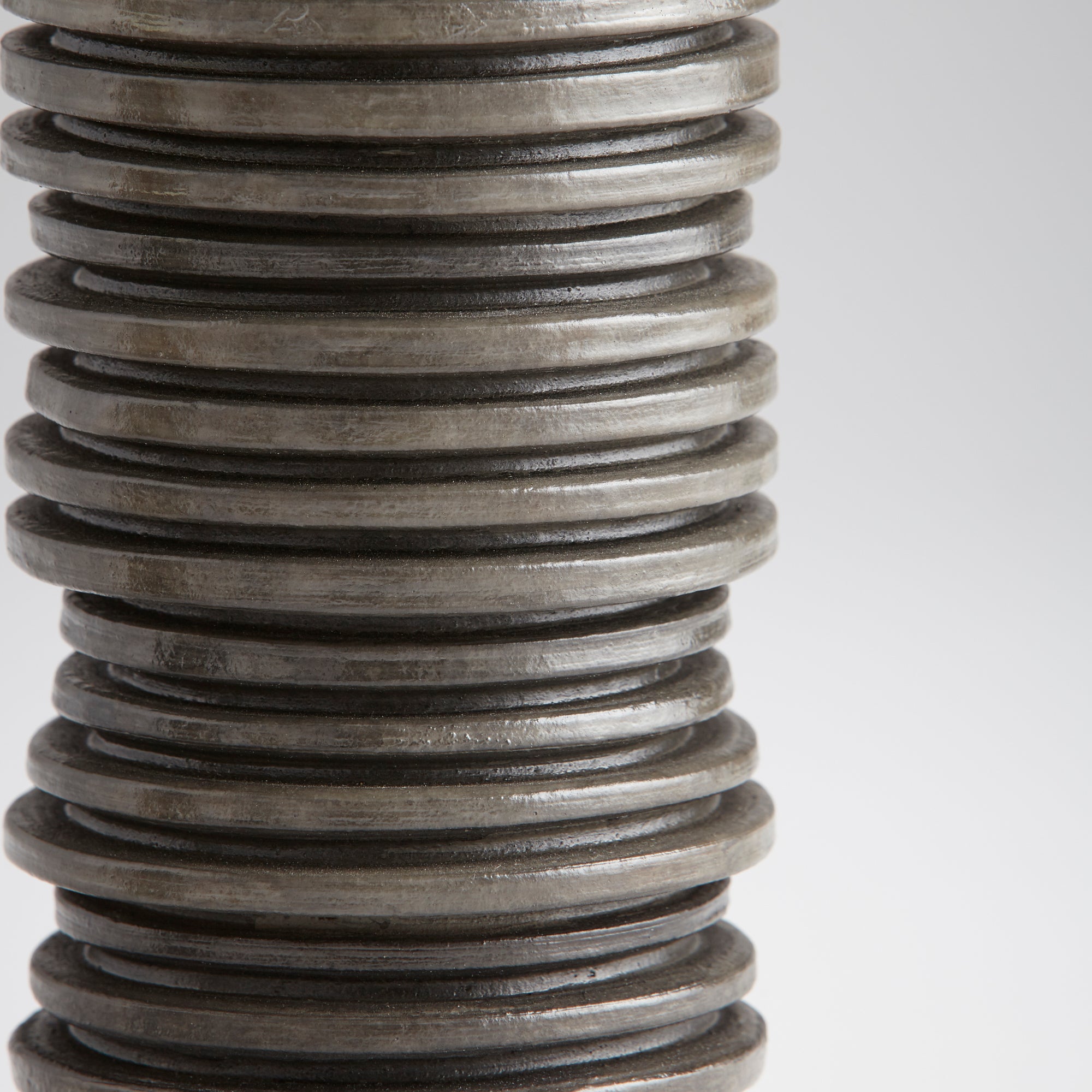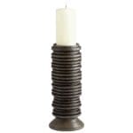 The Provo candle holder boasts a unique ridged design, tapering down to a broad circular base, all coated in a slate black finish. This abstract vessel is the perfect choice for any minimalist, modern or transitional setting. Available in three size options, fit for your fire mantle plans, coffee table styling, or entryway console decor.