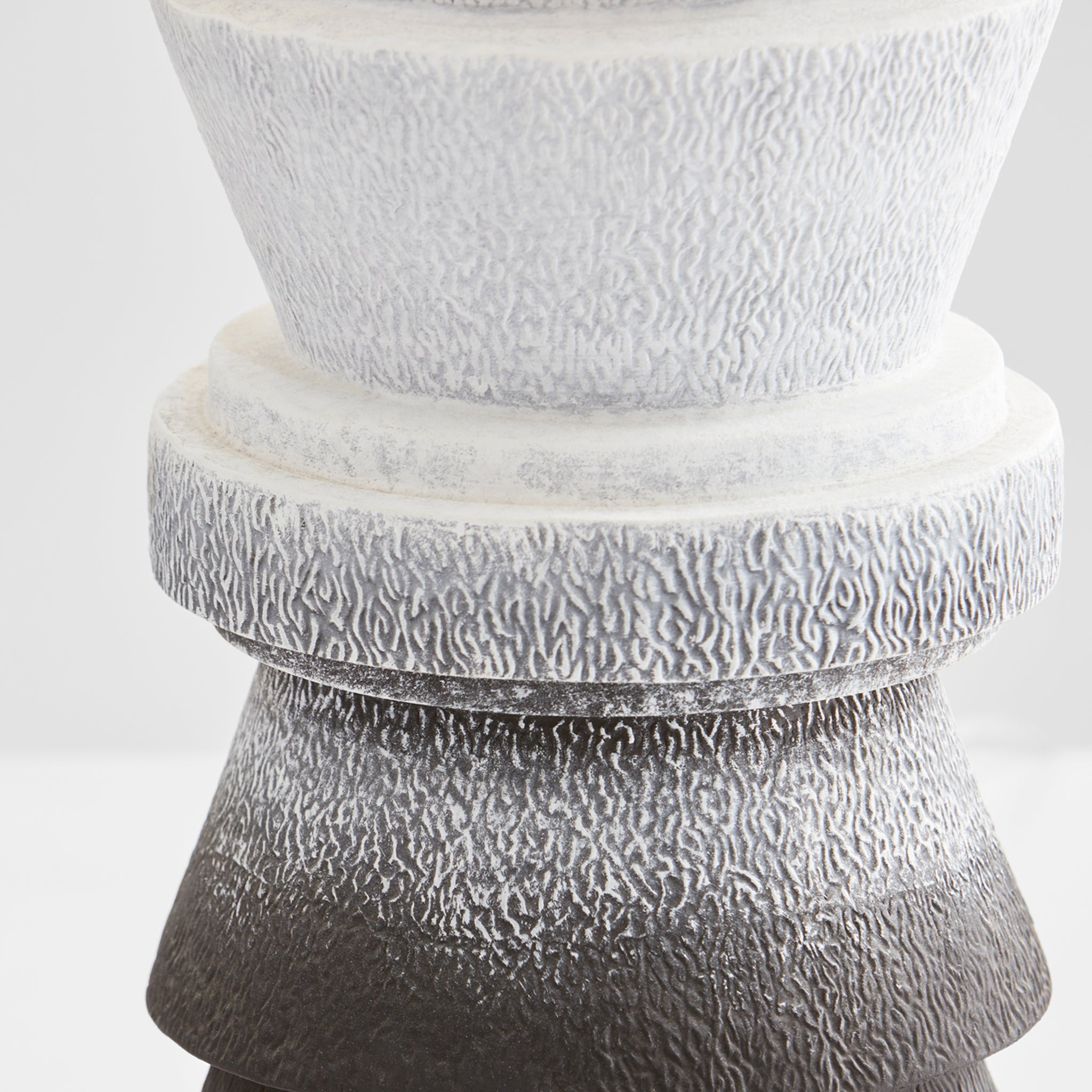 Inspired by the maritime city of Rhodes, Greece, this table lamp’s contour features a notched shape akin to that of a sandglass, an ancient seafaring instrument. The Rhodes table lamp boasts a highly textured ceramic base with a dark grey and white ombre finish. Fit for such a memorable lamp body, this fixture is capped with a modest white linen shade.