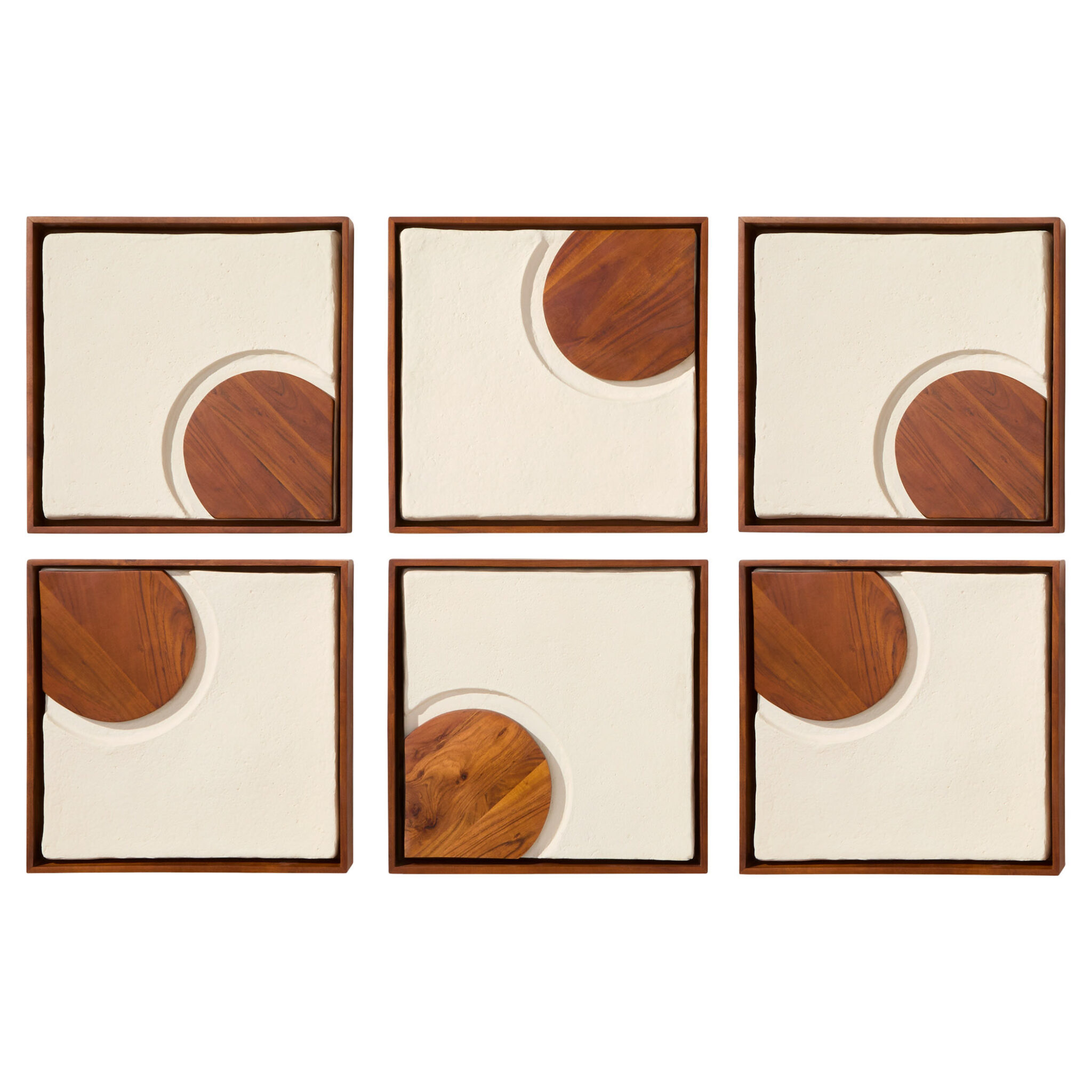 The Rhys Decorative Panels can hang in multiples to customize any space, offering endless design possibilities and the ability to curate a layout that suits your needs. Off-white organic material paired with the walnut tones of acacia wood creates a dynamic contrast in texture and color.