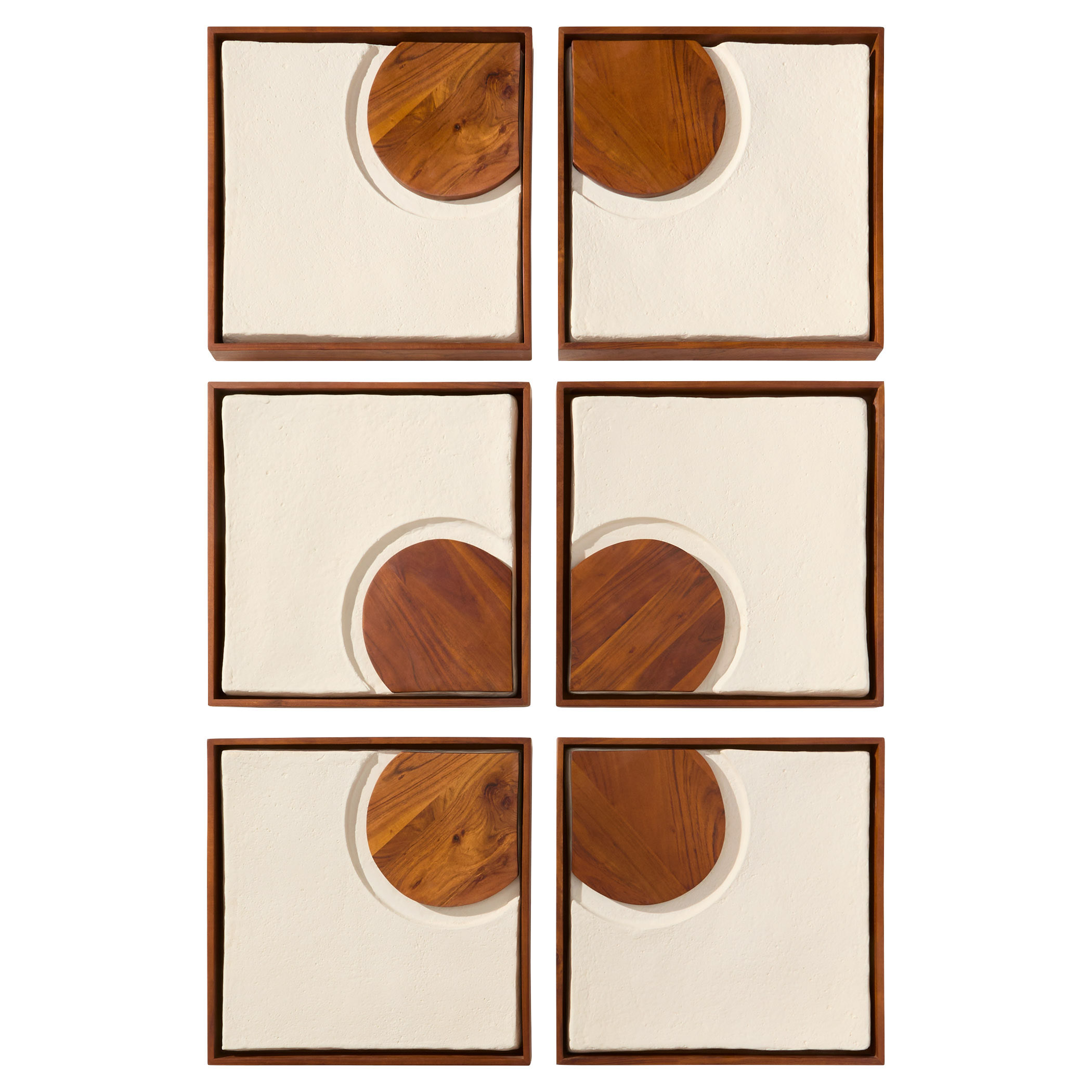 The Rhys Decorative Panels can hang in multiples to customize any space, offering endless design possibilities and the ability to curate a layout that suits your needs. Off-white organic material paired with the walnut tones of acacia wood creates a dynamic contrast in texture and color.