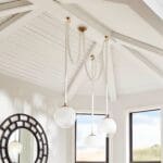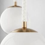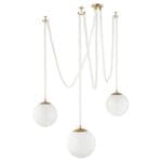 The magic of the Rockport Collection lies in the delicate, wispy, white, and smoky details that gracefully form swirling patterns inside milky glass spheres. These intricate designs capture the essence of the coastal breeze, offering a captivating and whimsical ambiance. Each fixture within this collection is a work of art, with no two alike, showcasing the exquisite craftsmanship and attention to detail. The aged brass canopy and fittings lend an air of vintage charm, while heavy white cotton rope in nautical braids extends gracefully from the glass sphere before it is fixed by an aged brass cleat hitch. The Rockport 3 Light pendant comes with 3 aged brass hook for hanging. Additional Rockport Hooks are available for purchase.
