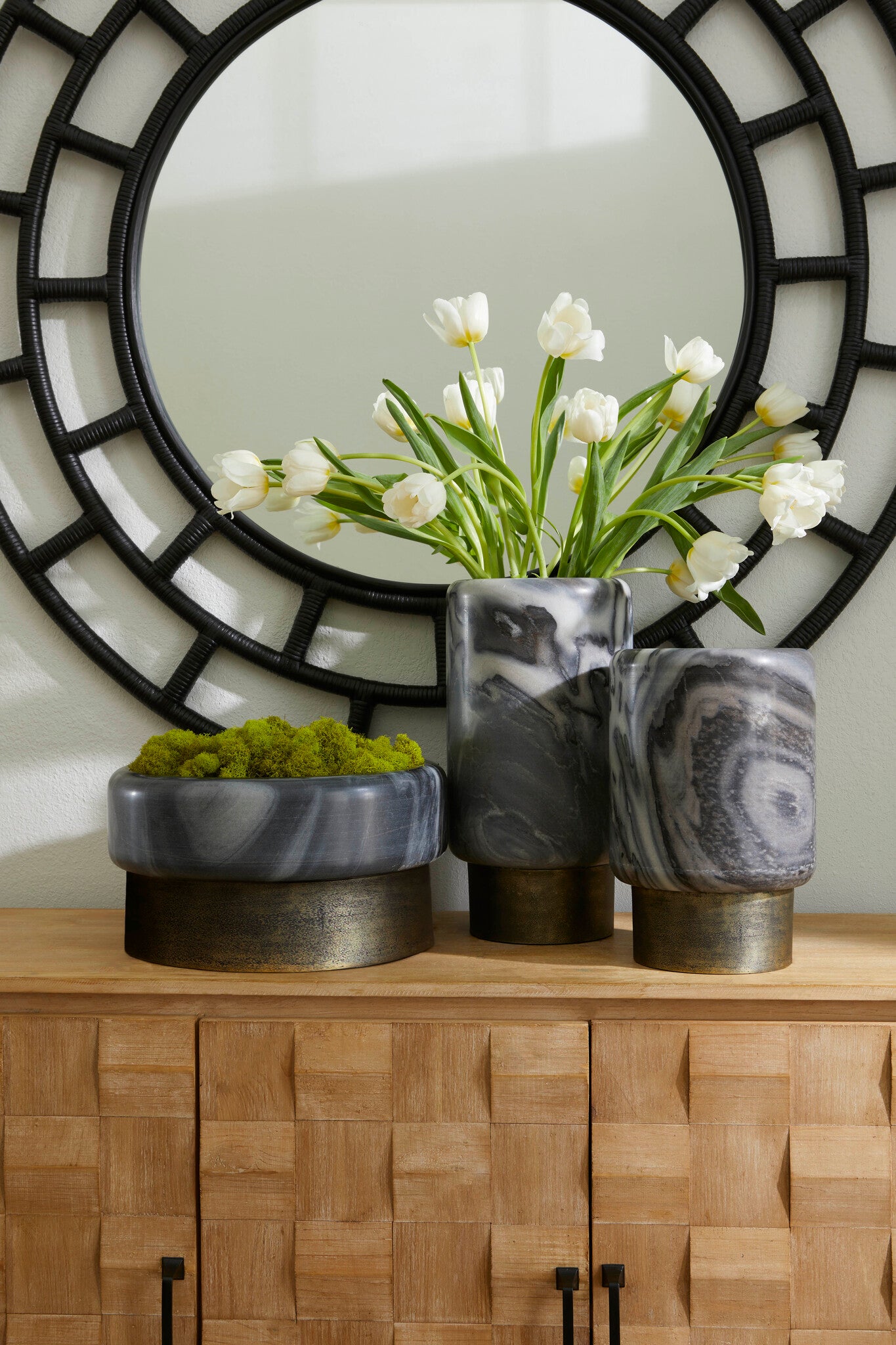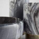 The Roma Collection of vases and bowls proudly presents massive hand-hewn marble pieces that encapsulate the remarkable beauty of Kayampura marble, a native Indian stone renowned for its captivating veining. Each unique piece rests atop an antique nickel-finished, cast aluminum plinthe base. The Roma Collection is a testament to the enduring appeal of artistry and the beauty of natural materials.