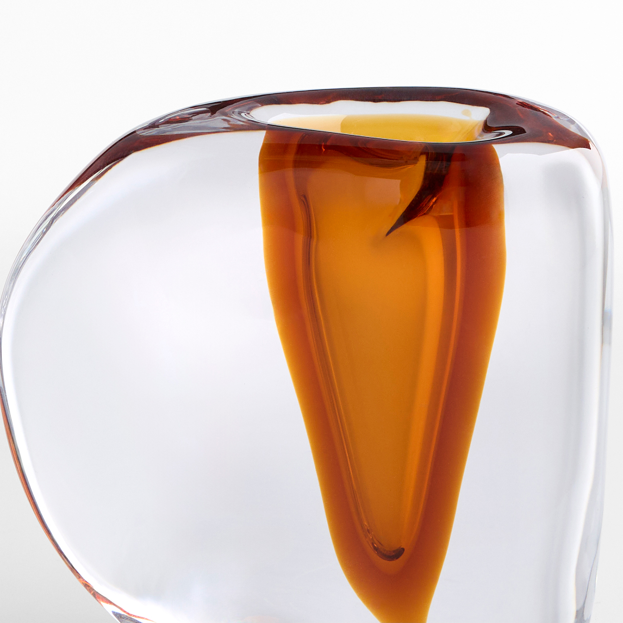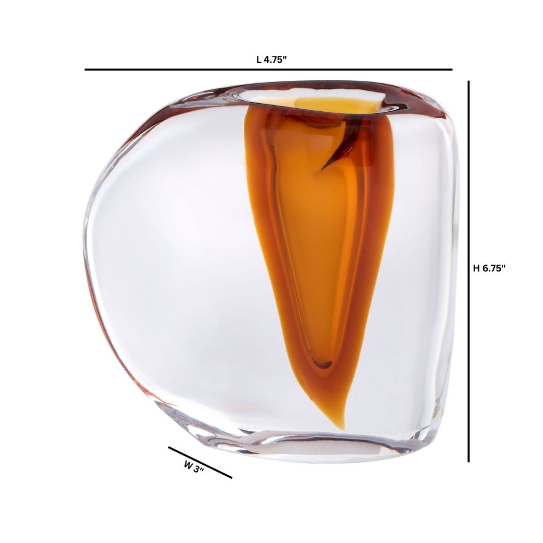 Crafted from hand-blown, thick-cased glass, the Rovno collection is a testament to the artistry and dedication of skilled artisans. Delicately formed within the glass, an intricate swirl of the amber-colored inner layer extends into the clear base. Notably, the Rovno Collection boasts a substantial weight, a testament to its quality and craftsmanship. This heaviness adds to the collection’s allure, emphasizing its luxurious feel and making it a statement piece in any setting. Available in three sizes.